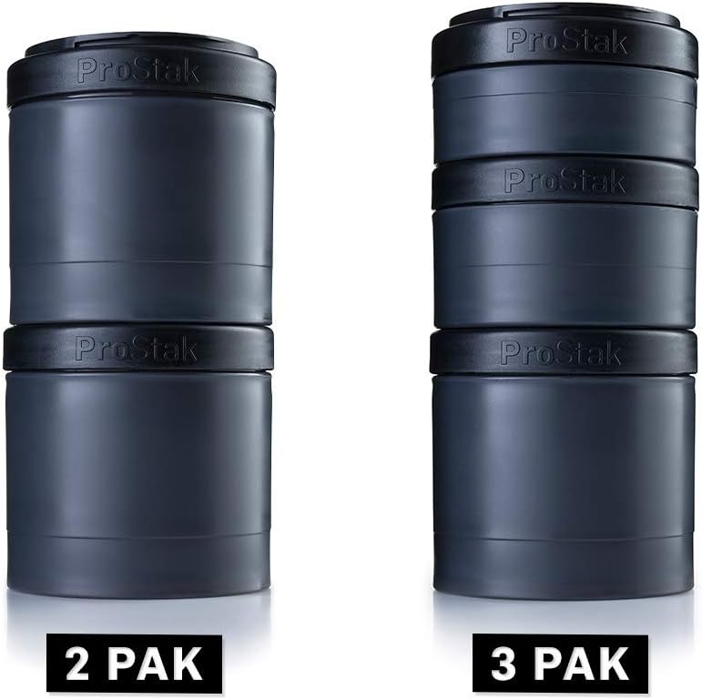 BlenderBottle ProStak Twist n’ Lock Storage Jars Growth Paks broaden the capability of the BlenderBottle ProStak system, making it straightforward to hold extra proteins, powders, nutritional vitamins & capsules, dietary supplements and extra. The ProStak’s distinctive interlocking jars have particular person lids, so it is potential to hold all of it with or with out the bottle. The three-Pak options additional 100cc and 150cc jars, doubling the preliminary capability of the ProStak system, whereas the large 250cc jar presents ample room for even the most important protein, meal substitute, and on-the-go vitamin wants. The covert tablet tray locks into any jar lid, permitting customers to hold capsules and powders in the identical jar. The two-Pak comes with 2 extra-large 250cc jars and the tablet holder. BlenderBottle ProStak Twist n’ Lock Storage Jars Growth Paks are constructed from the identical nice mateials as all BlenderBottle merchandise, are dishwasher protected, and BPA- and Phthalate-free.