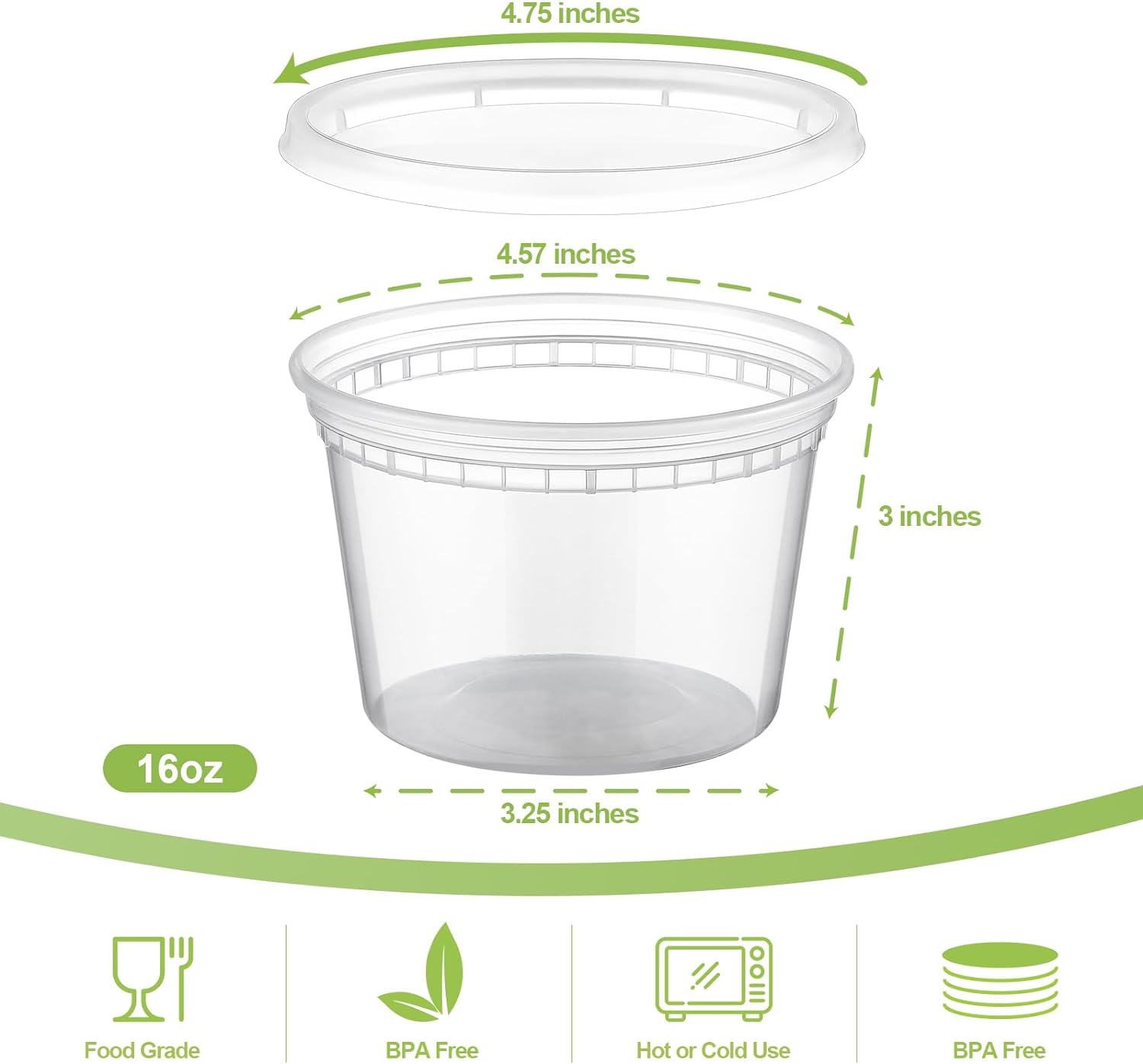 AOZITA 32 Units 16 oz Plastic Deli Meals Containers With Lids, Hermetic Meals Storage Containers, Freezer/Dishwasher/Microwave Protected, Soup Containers For Takeout Meal Prep Storage