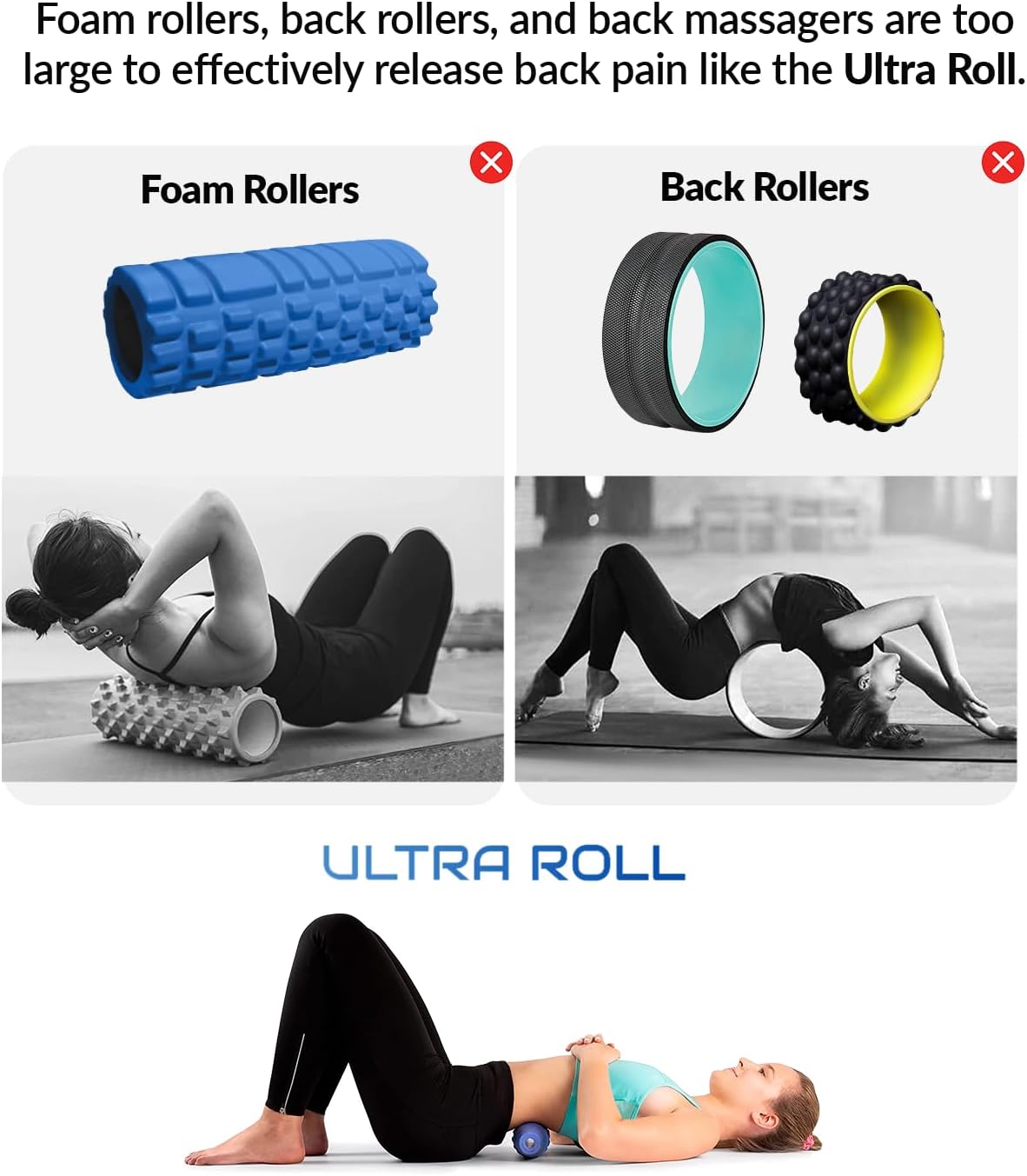 BETTER DESIGN – Most again rollers, foam rollers and yoga wheels have a big diameter that covers a big space, so they do not dig into the muscle groups alongside the backbone the place you want it. They’ll pressure the backbone and are troublesome to stability on. The smaller measurement of the Extremely Curler places stress proper into the proper space to launch the muscle spasm, ache and lactic acid. It’s not attainable with these different gadgets as a result of they don’t contact the deeper muscle groups.