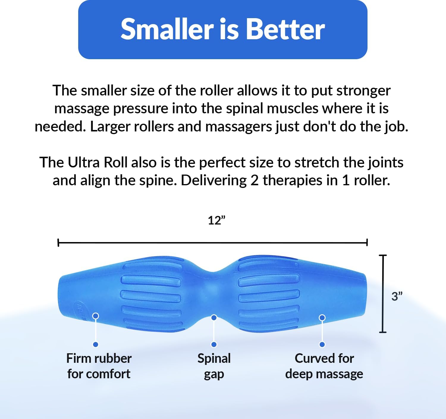 TRACTION AND SPINAL ALIGNMENT – The Extremely Roll will get between the joints, it truly lifts and separates every joint, creating traction between the joints. This aligns the backbone, much like Chiropractic care. It’s possible you’ll really feel some “cracking” of the joints however extra importantly it will launch stress within the ligaments, which might cut back muscle spasm and calm down the muscle. The mix of the compression therapeutic massage and traction makes the Extremely Roll very efficient at relieving again ache.