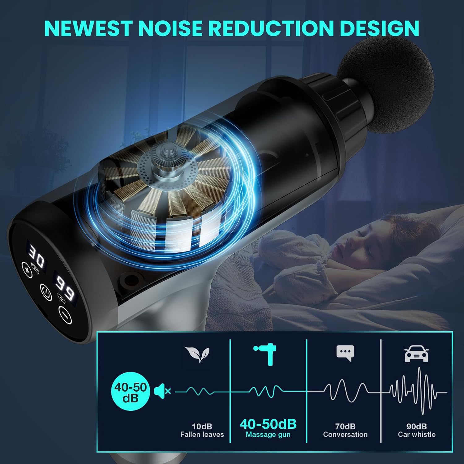 【Quiet Efficiency】With a high-percussive quiet motor, this sports activities therapeutic massage gun operates at solely 45-55dB, making certain you possibly can get pleasure from a robust, low-noise therapeutic massage at dwelling, within the health club, or on the workplace with out concern of disturbing others