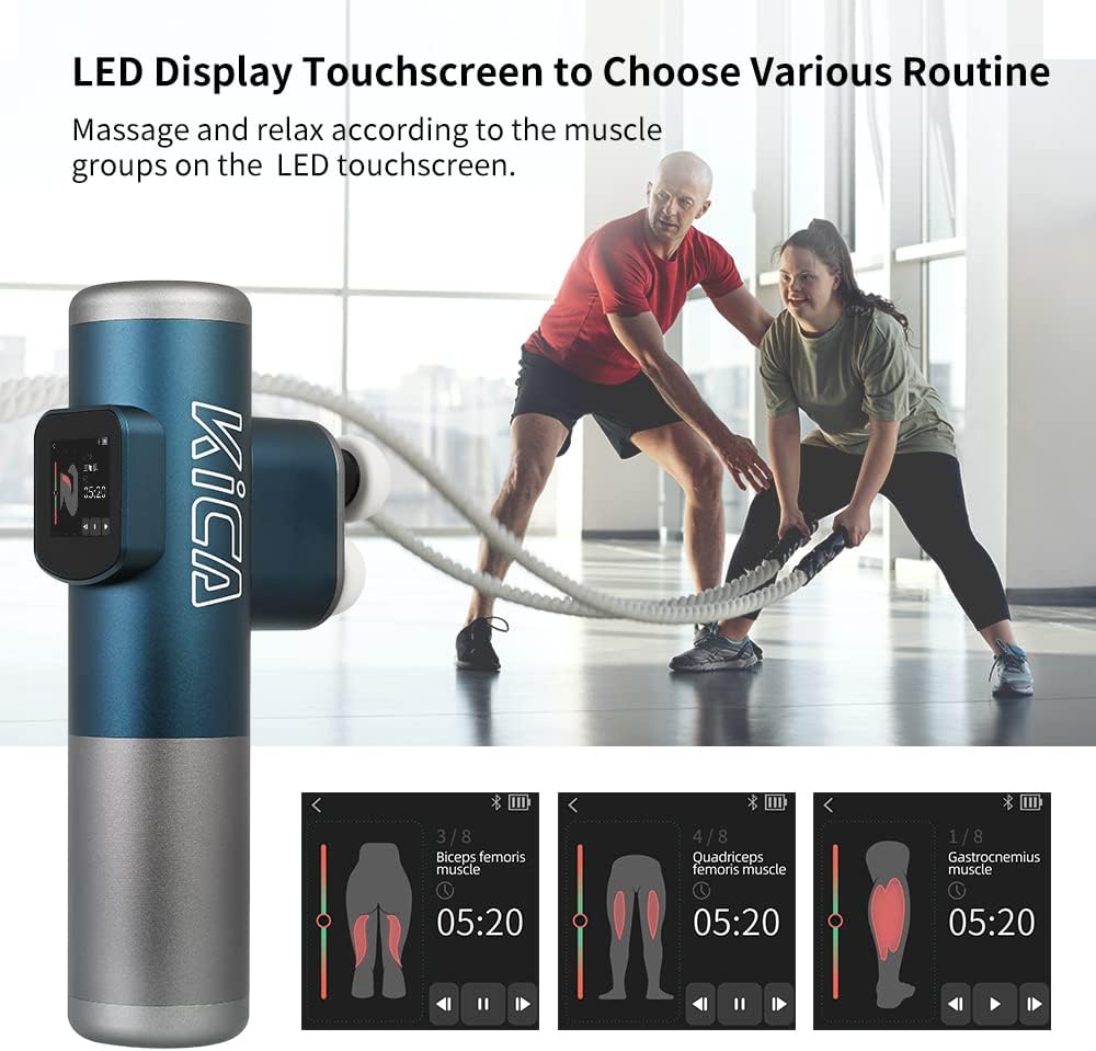 Kica Professional Double-Head Mini Therapeutic massage Gun with LED Show Touchscreen, Handheld Deep Tissue Percussion Muscle Therapeutic massage Gun for Remedy and Rest, 6 Therapeutic massage Heads 10 Speeds Energy Brushless Motor