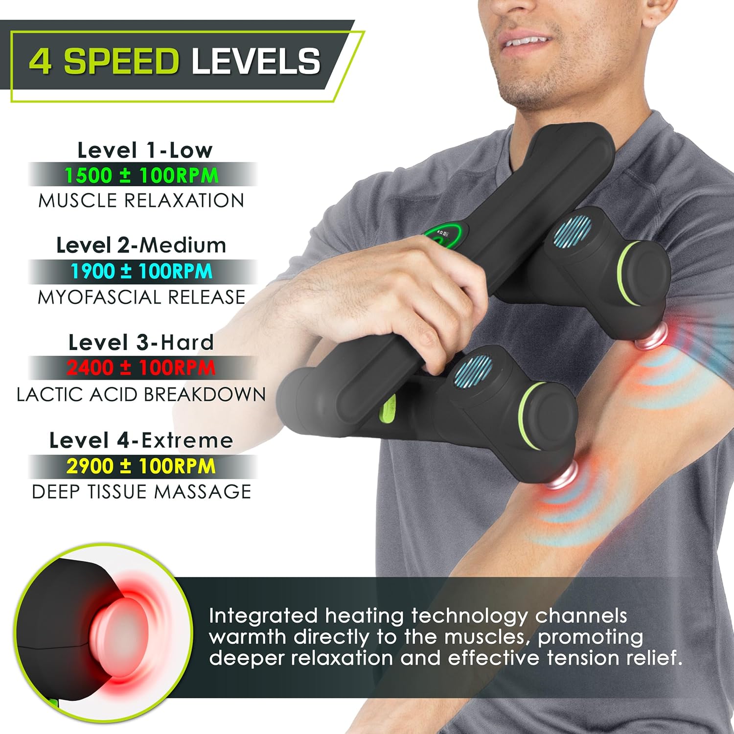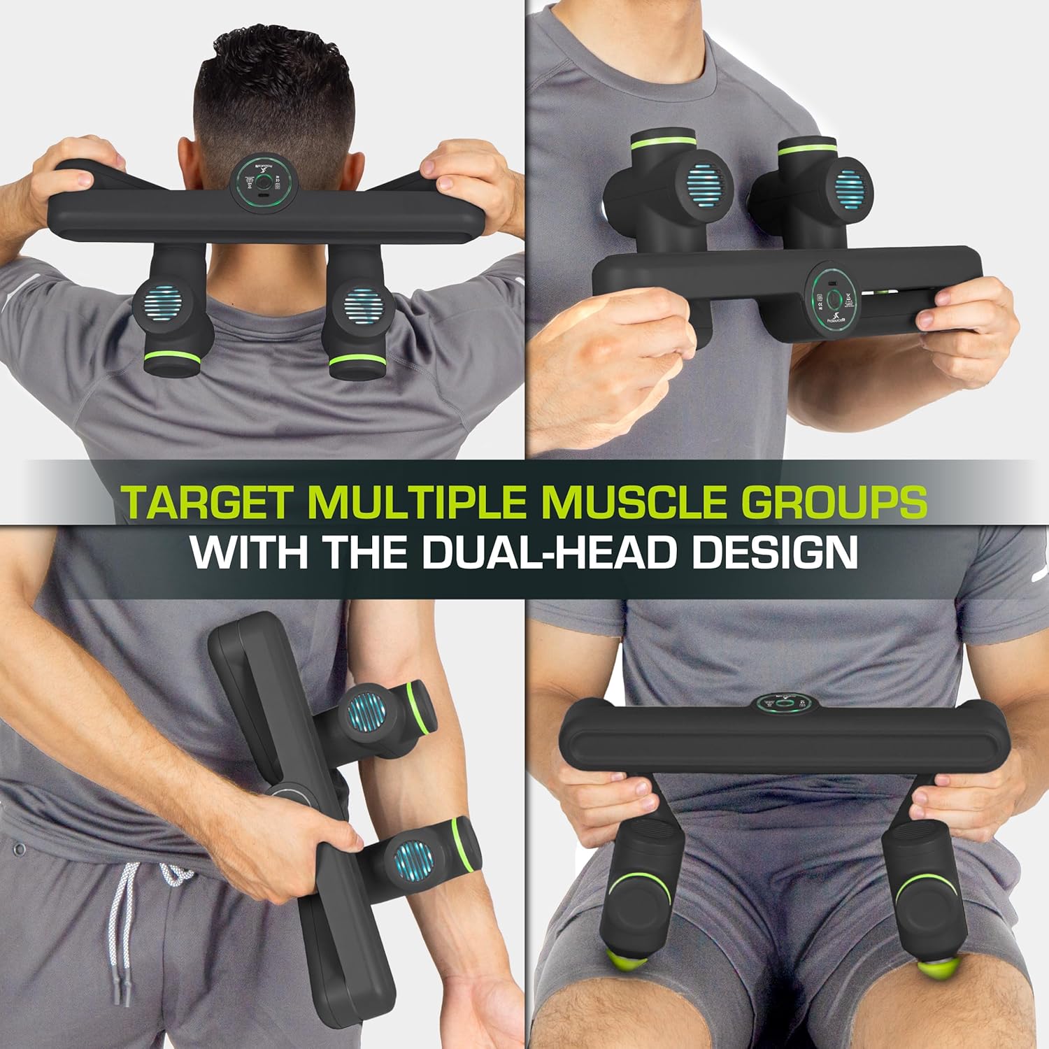DUAL MASSAGE GUN: The twin heads of the handheld therapeutic massage gun give aid to 2 areas directly with double the percussion heads; every head is hooked up to an adjustable deal with for exact positioning; distant management included for handy operation