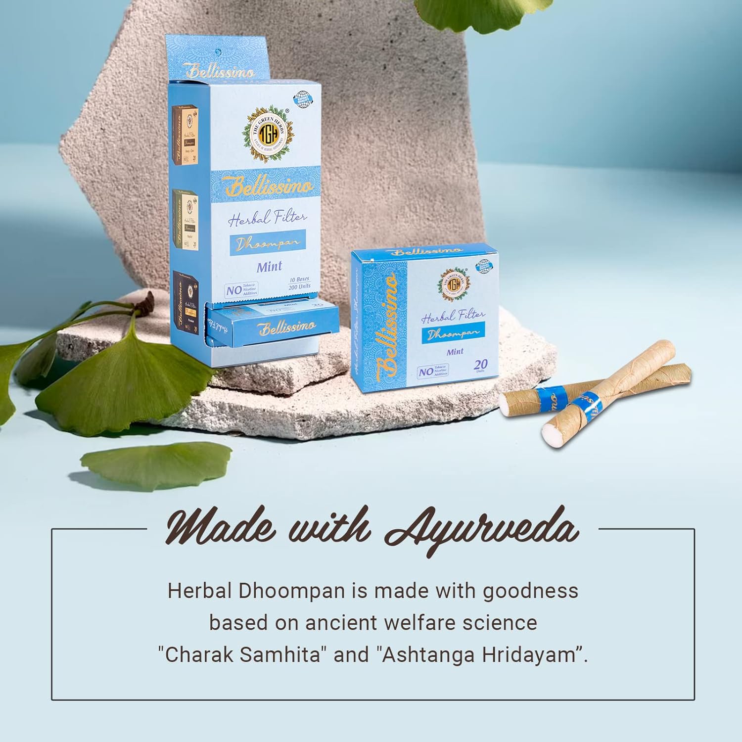 Bellissimo Natural Cigarette, Tobacco & Nicotine free Natural Filter Dhoompan, Mint & Honey Clove Taste, Rolled in Tendu Leaves, Helps Stop Smoking, Non-Addictive Smoking Cessation, 2 Pack