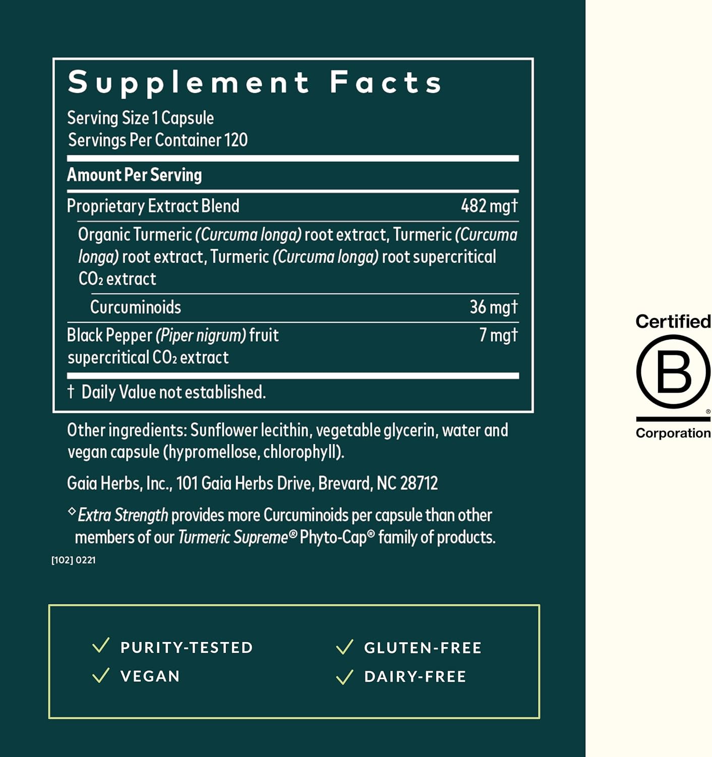 Purity-Examined: Turmeric Supreme Further Power is vegan, gluten-free & proudly made in NC, USA