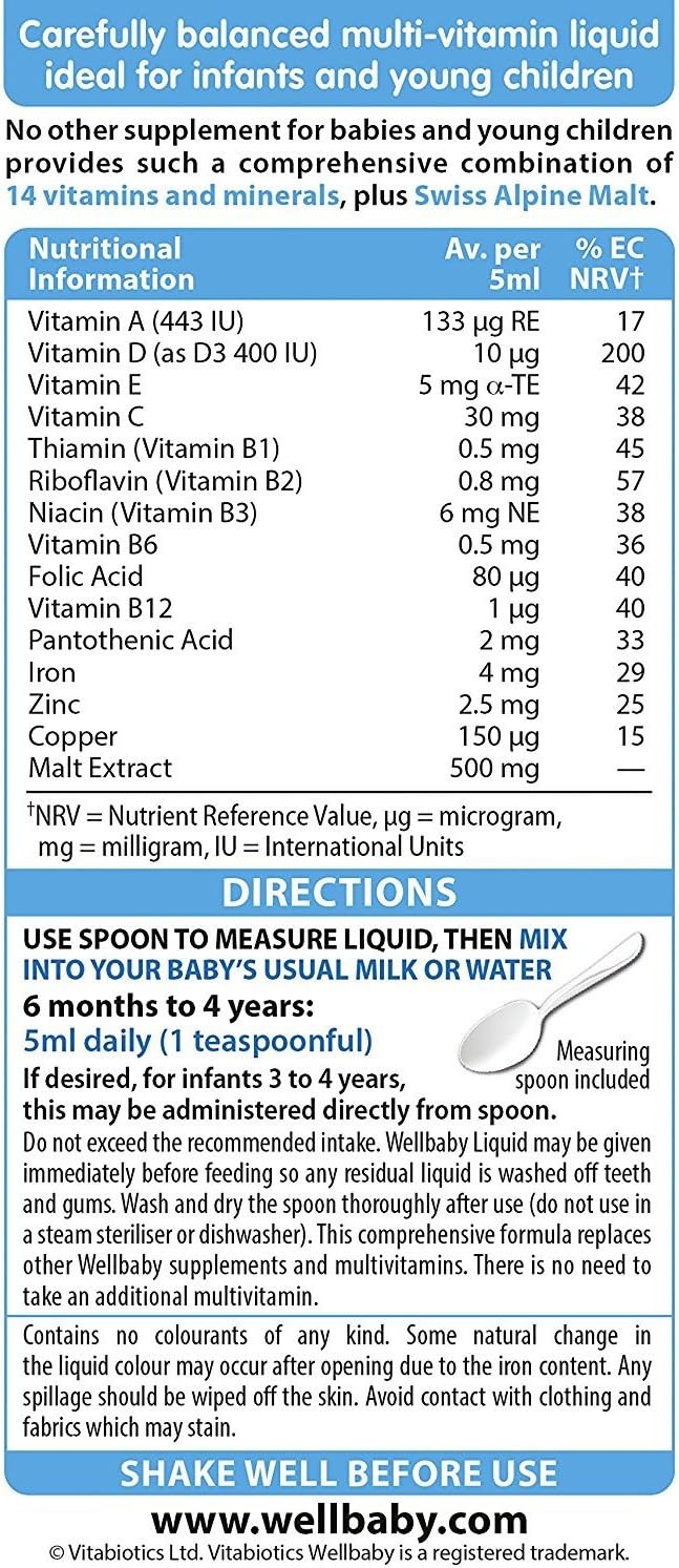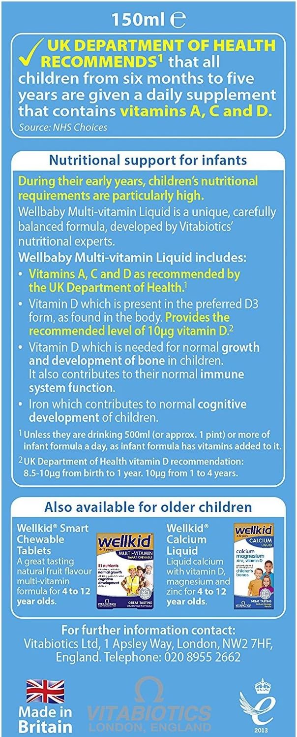 Vitabiotics Wellkid Child and Toddler Syrup. From the makers of Pregnacare Wellkid Child and Toddler liquid has been developed particularly for infants and infants from 3 months to five years to offer a protected and balanced complete vary of 14 important nutritional vitamins and minerals.