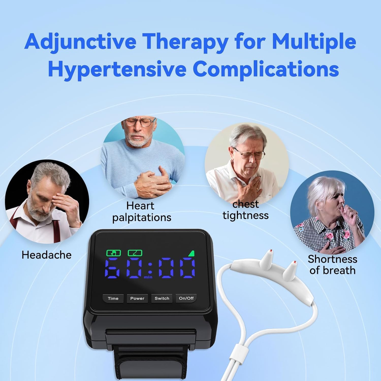 【Superior Know-how】Our watch equipment makes use of 650nm to irradiate blood vessels and acupoints, prompts the exercise of assorted enzymes within the cells via photochemical reactions, and improves the oxygen-carrying capability of pink blood cells, thereby decreasing blood viscosity and blood strain.