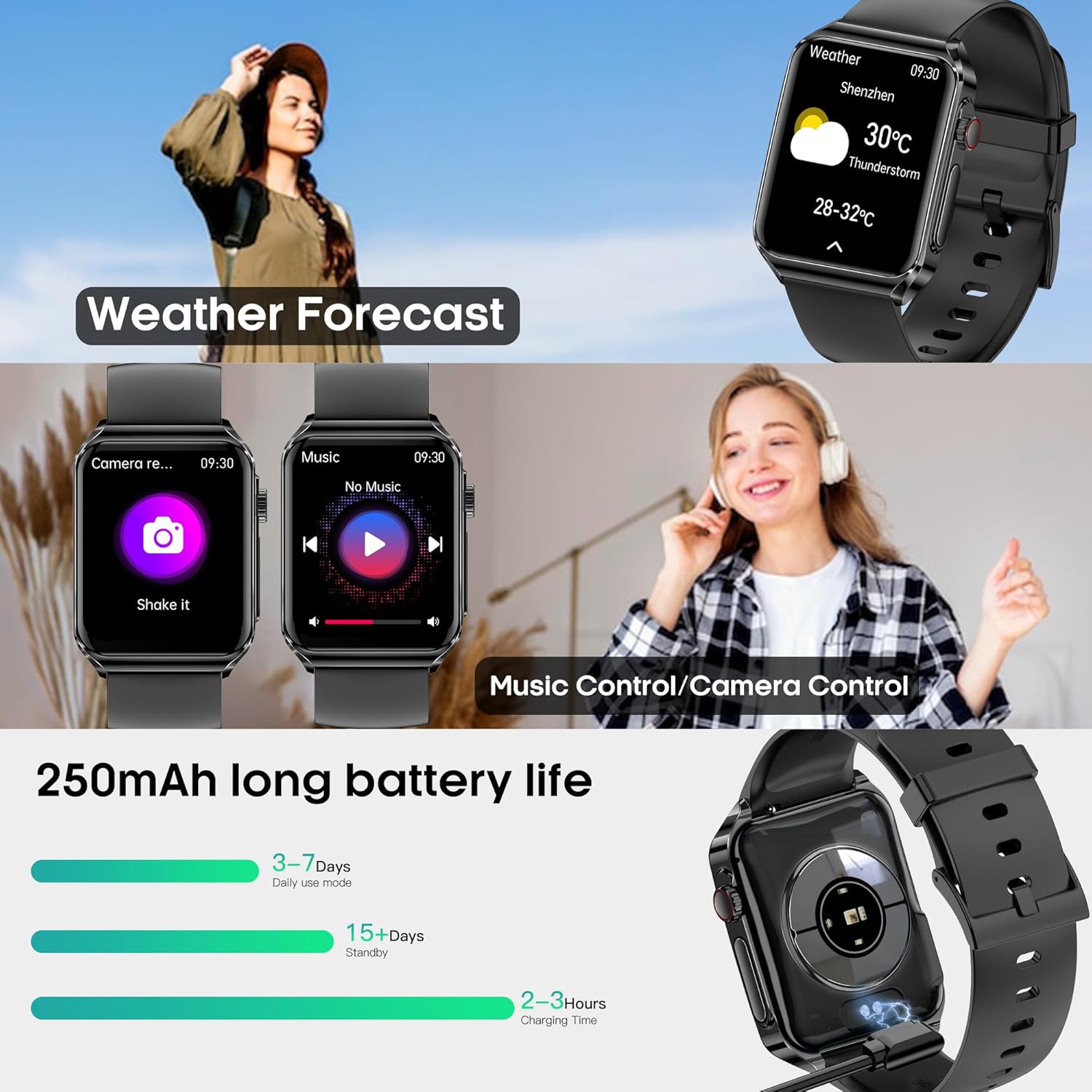 【Extensive Compatibility and Lengthy Battery Life】This sports activities watch is suitable with smartphones working iOS 8.0 and Android 4.4 or later. It incorporates a high-capacity, low-consumption design with a built-in 250 mAh rechargeable battery that totally fees in simply 2-3 hours. Get pleasure from a utilization time of 3-7 days, with standby mode lasting over 15 days.