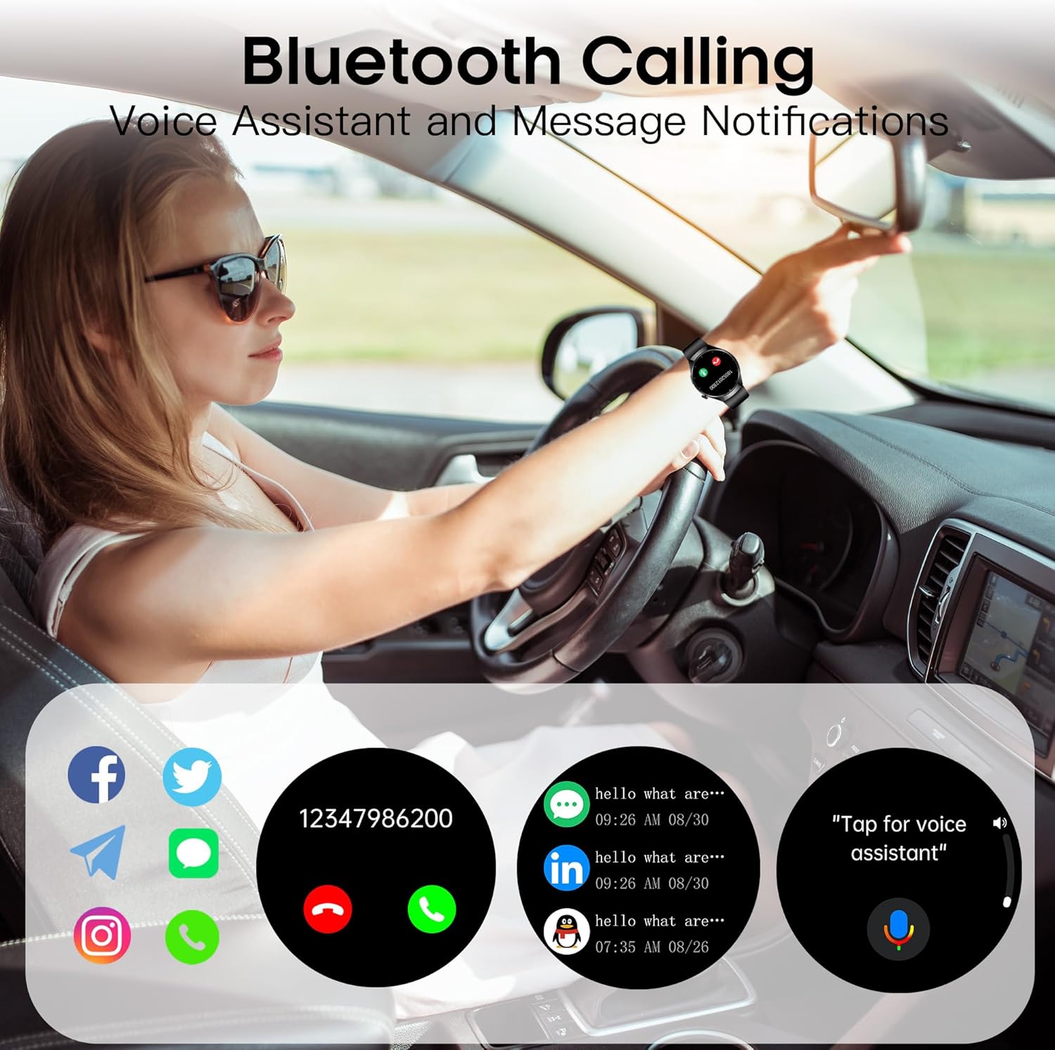 【Bluetooth Calling, Notifications, and Voice Assistant】This unisex smartwatch options Bluetooth 5.1 for a sooner and extra secure connection. With its built-in microphone and high-definition speaker, you may make and obtain calls immediately from the watch without having your telephone. The built-in voice assistant allows you to ask questions and management music playback effortlessly. Plus, all of your notifications will pop up in your wrist and provide you with a warning with vibrations.