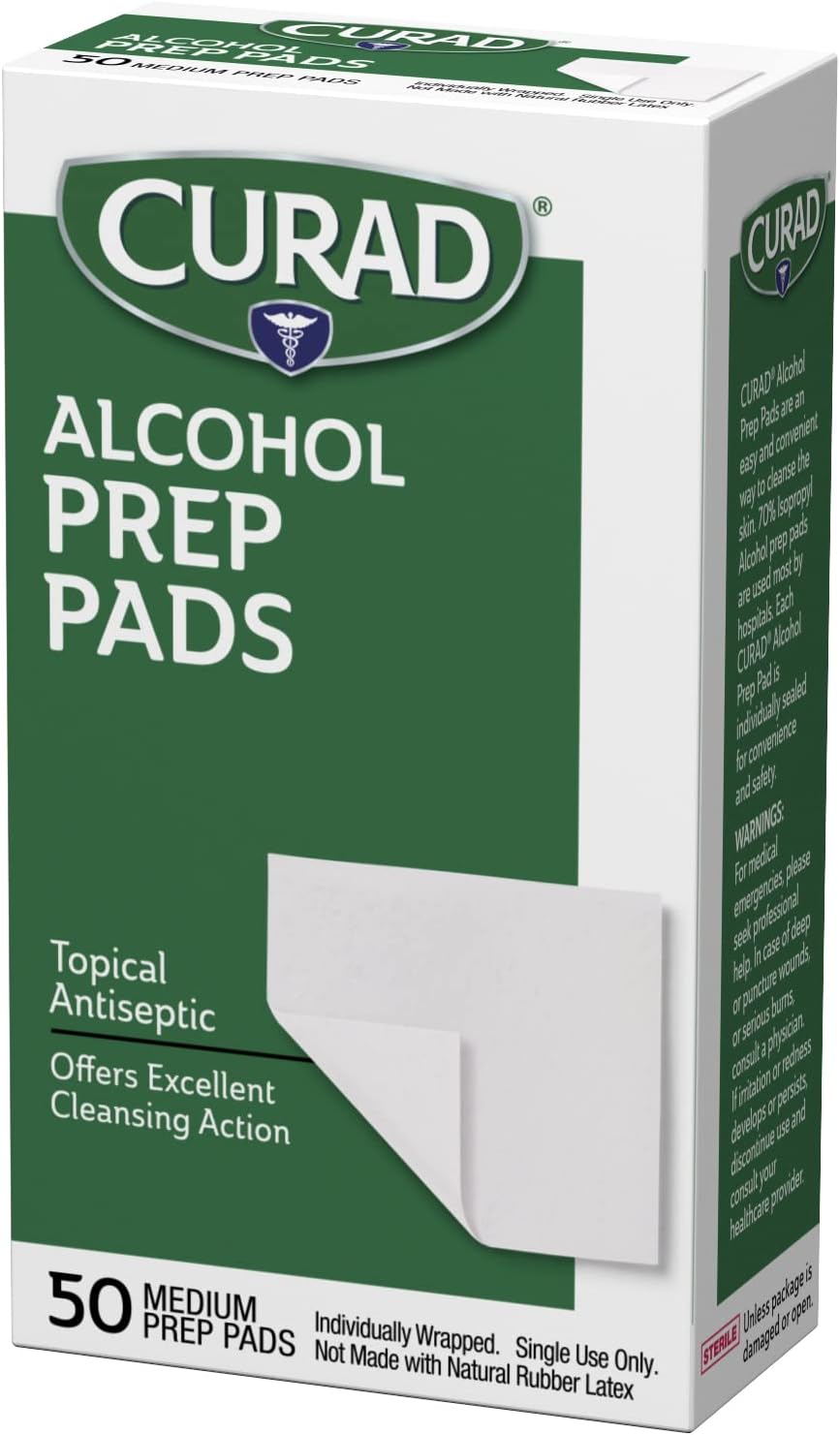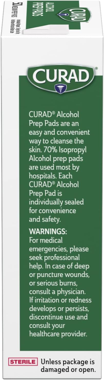 CURAD Medium 2-Ply Sterile Alcohol Prep Pads, Important for First Help Kits, 50/Field, Pack of 24
