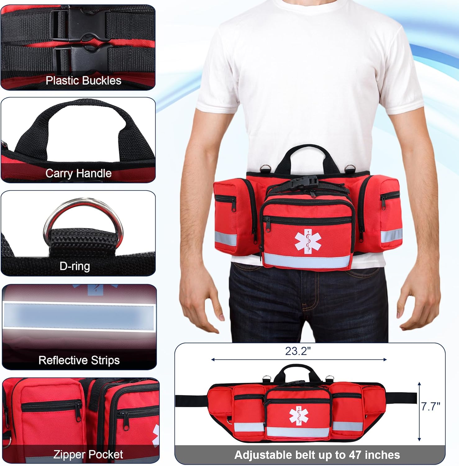 PRACTICAL: Reflective strips make the package extra seen and simple to search out and use when wanted, a number of pockets make it straightforward to hold and categorize gadgets, snug handles, and D-rings improve the portability of the primary assist fanny pack. These sensible designs will improve your utilizing expertise.