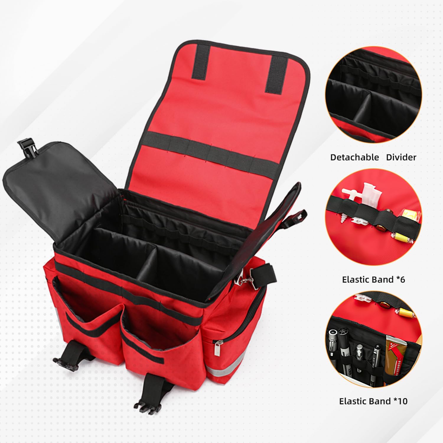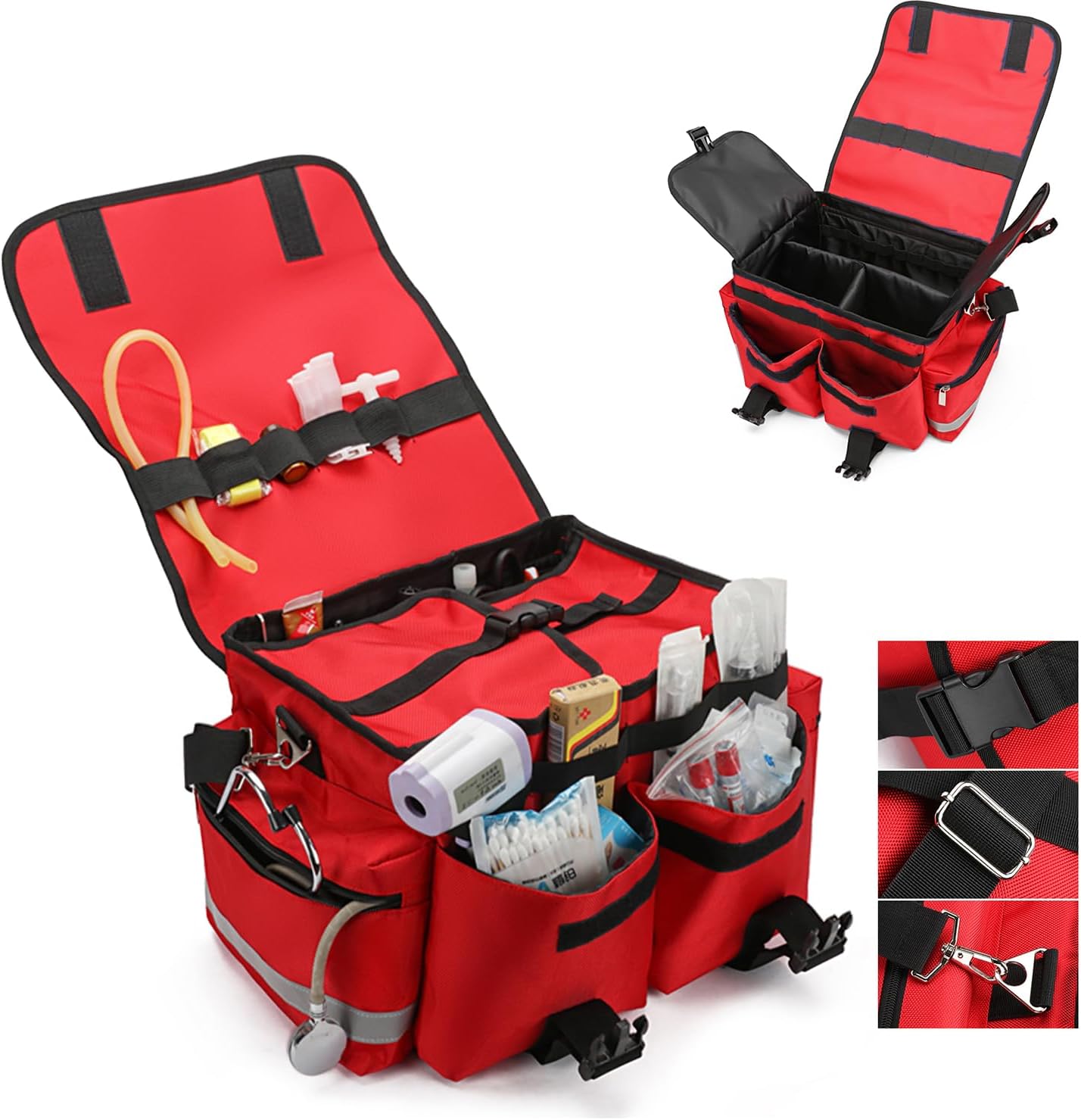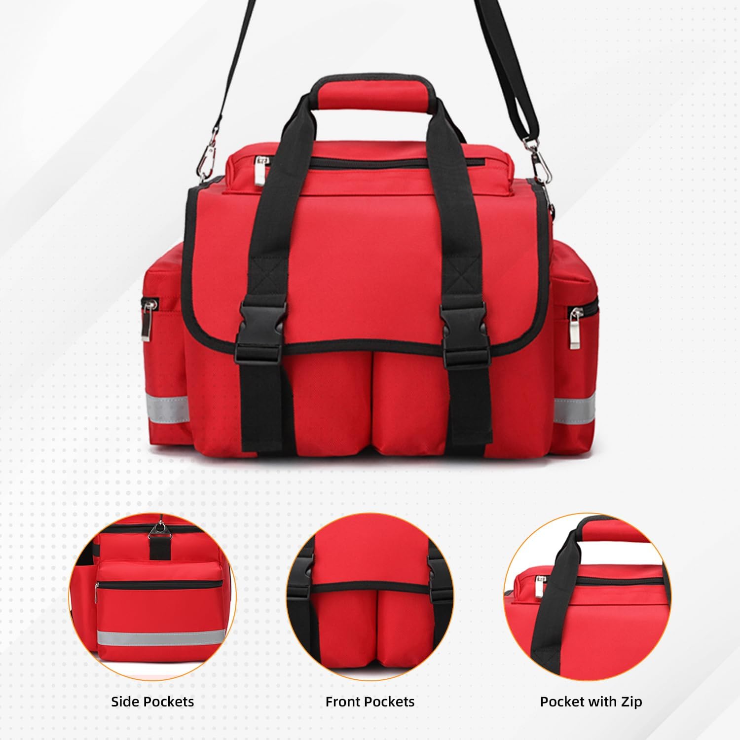 FUNCTIONAL DESIGN – Skilled trauma bag have excessive visibility reflective strips run alongside the pink shade medical bag and its outer pockets for straightforward recognition in the dead of night. It has a waterproof backside designed to maintain your gear dry beneath moist circumstances
