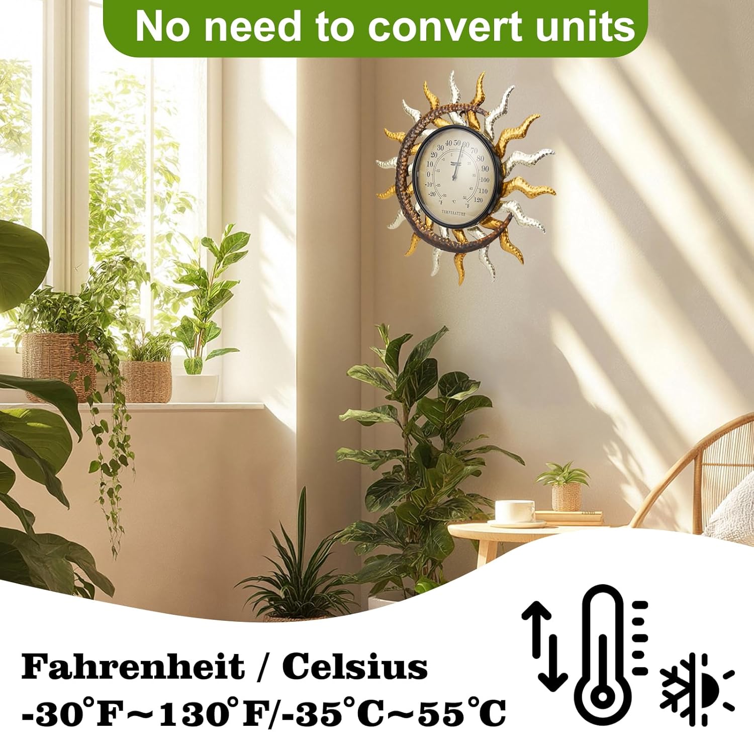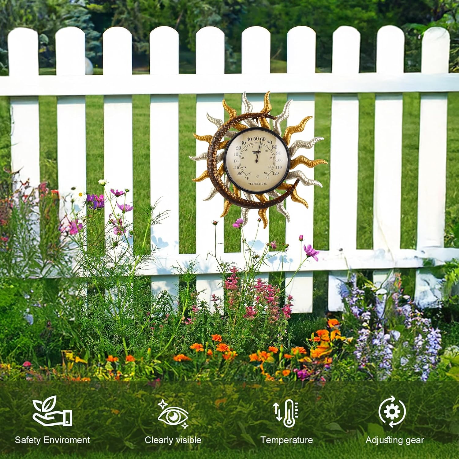 13” Solar&Moon Out of doors Thermometer Wall-Mounted Thermometer Indoor Gold and Silver Decor Temperature Gauges for Backyard Patio Greenhouse Window Balcony Room Storage Plant Nurseries