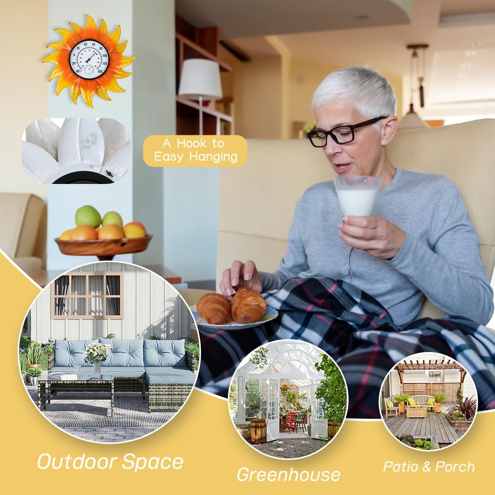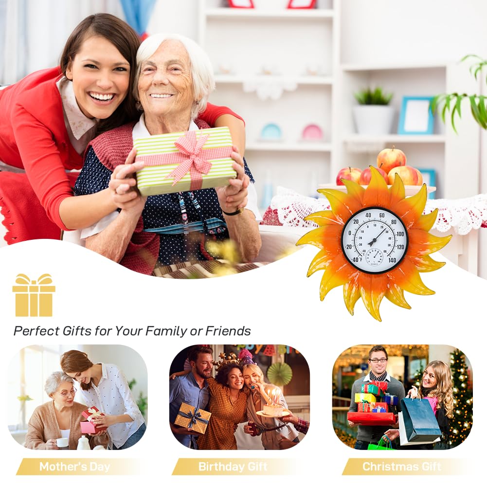Giant Sunflower Thermometer: The 9.8-inch dial and 4 steel petals kind a 24-inch massive sunflower thermometer. This beautiful outside thermometer cannot solely measure the temperature but additionally adorn the room as a murals, and buddies who go to may even be amazed by it