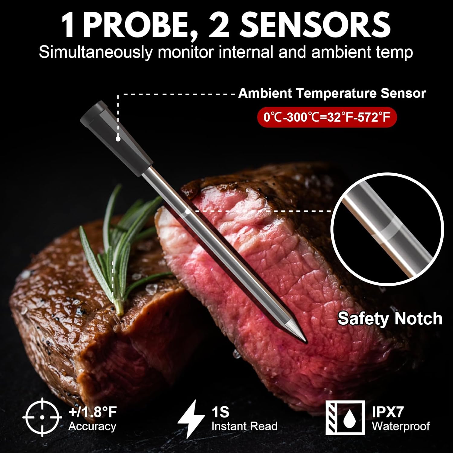 Twin Temperature Sensor, IPX7 Waterproof Probe:This wi-fi meat twin temperature sensor can concurrently monitor the inner meat temperature (as much as 212°F) to make sure the flavour you need from the grill. Plus, this cordless meat probe has an IPX7 waterproof score, so you possibly can clear it rapidly and simply. Relaxation assured, this instant-reading meat thermometer ensures correct.(Word: Keep away from utilizing open flames)