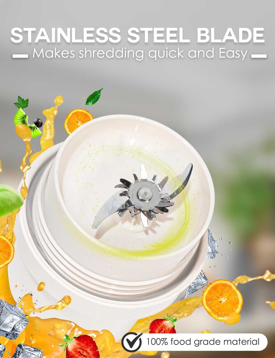 Compact Blender: Expertise worry-free comfort, because the supplies used are food-grade, making certain the best requirements of security and high quality. The blade is crafted from rust-resistant chrome steel, offering long-lasting sturdiness whereas making certain protected and environment friendly mixing. Moreover, the equipment is designed for easy operation—merely add your favourite elements, press the button as soon as, and inside moments, you will have a clean, refreshing beverage able to take pleasure in.