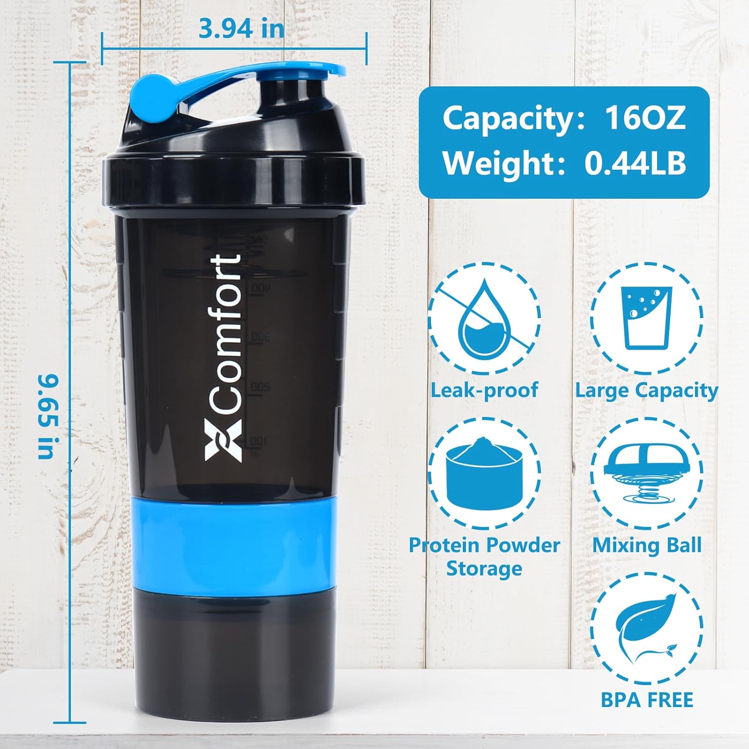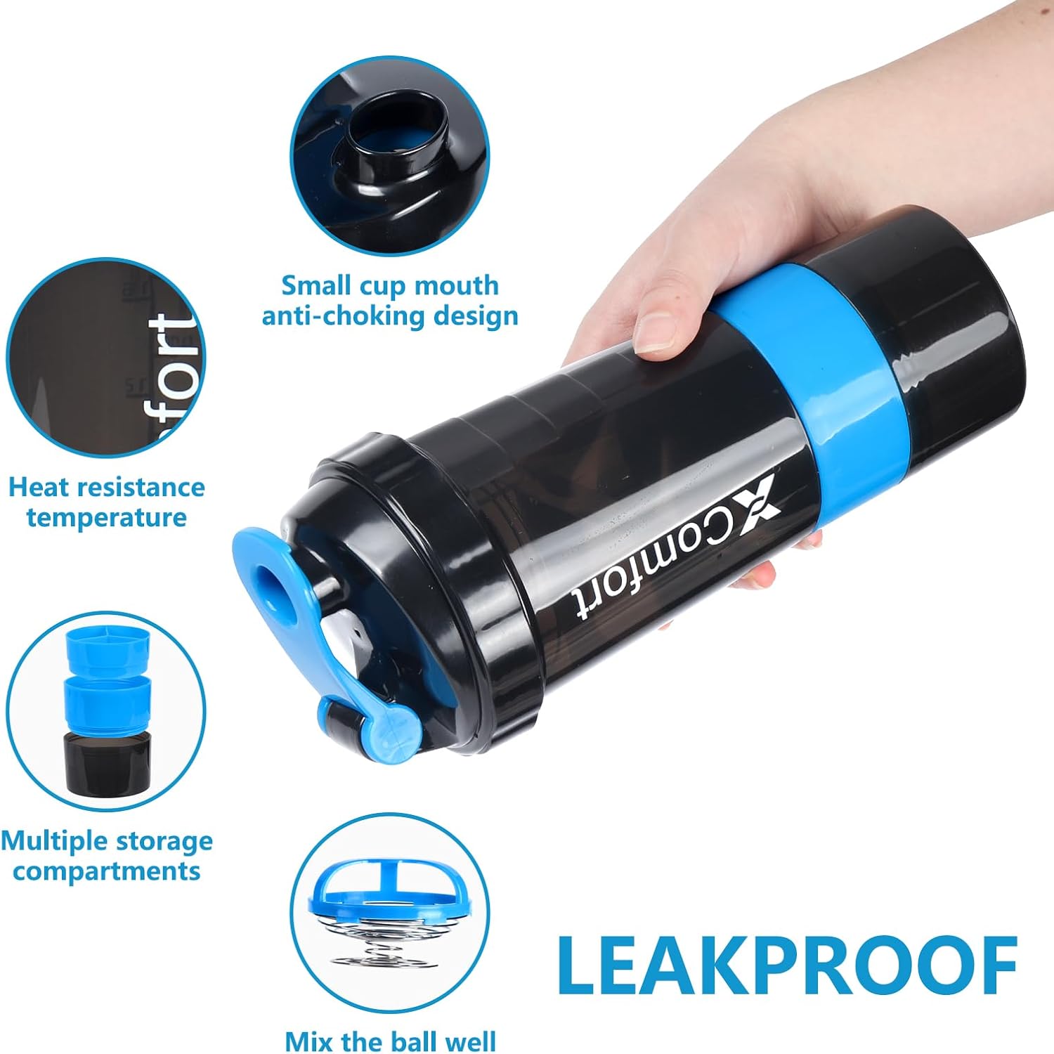 【100% LEAK-PROOF】:The XComfort shaker cups for protein shakes is designed with a screw cap and leak proof cap to make sure a safe seal that stops any liquid from leaking or spilling, even in a backpack, permitting you to hold your drink wherever you go.