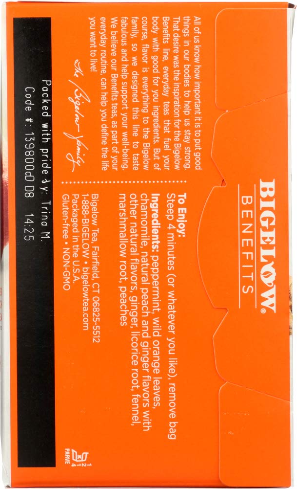 Bigelow Advantages Ginger & Peach Natural Tea , Pack of 1