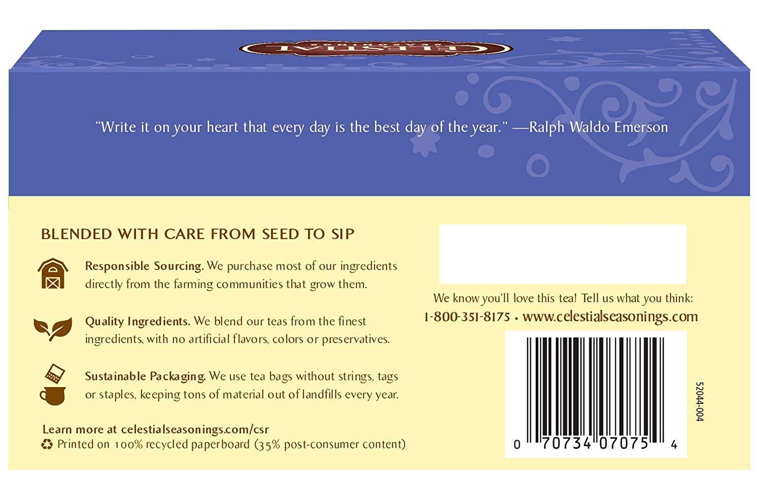 Prospects benefit from the nice style of this tea. They discover it refreshing, whether or not scorching or chilly, and recognize its good worth for cash. The tea is caffeine-free, sugar-free, and a zero-calorie summer time drink. Prospects additionally just like the scent, power, and rest that the tea offers.