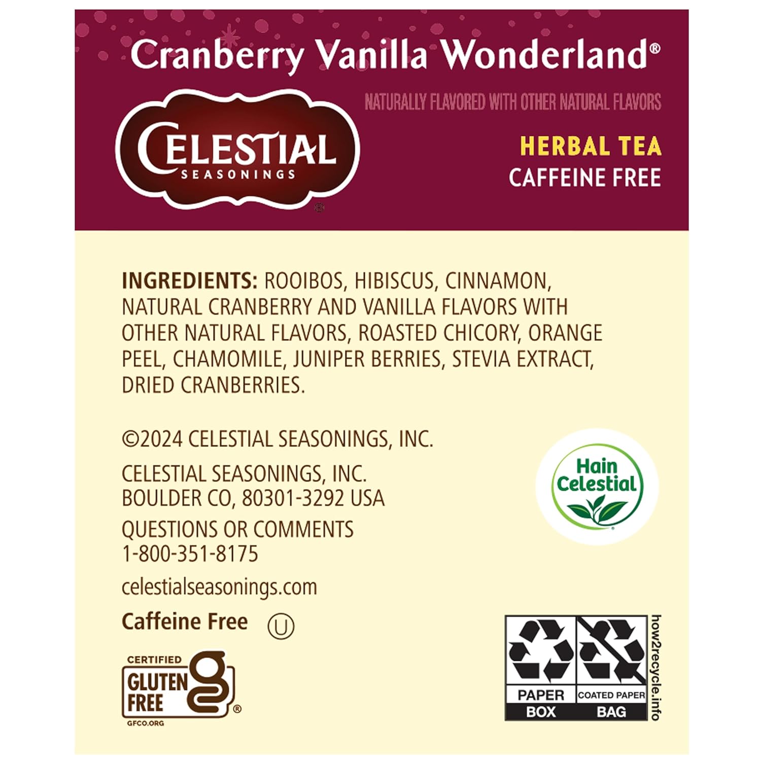 Celestial Seasonings Natural Tea, Cranberry Vanilla Wonderland, 18 Rely (Pack of 6)