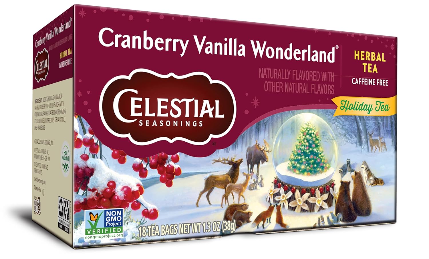 Six 18 rely containers of Celestial Seasonings Natural Tea, Cranberry Vanilla Wonderland