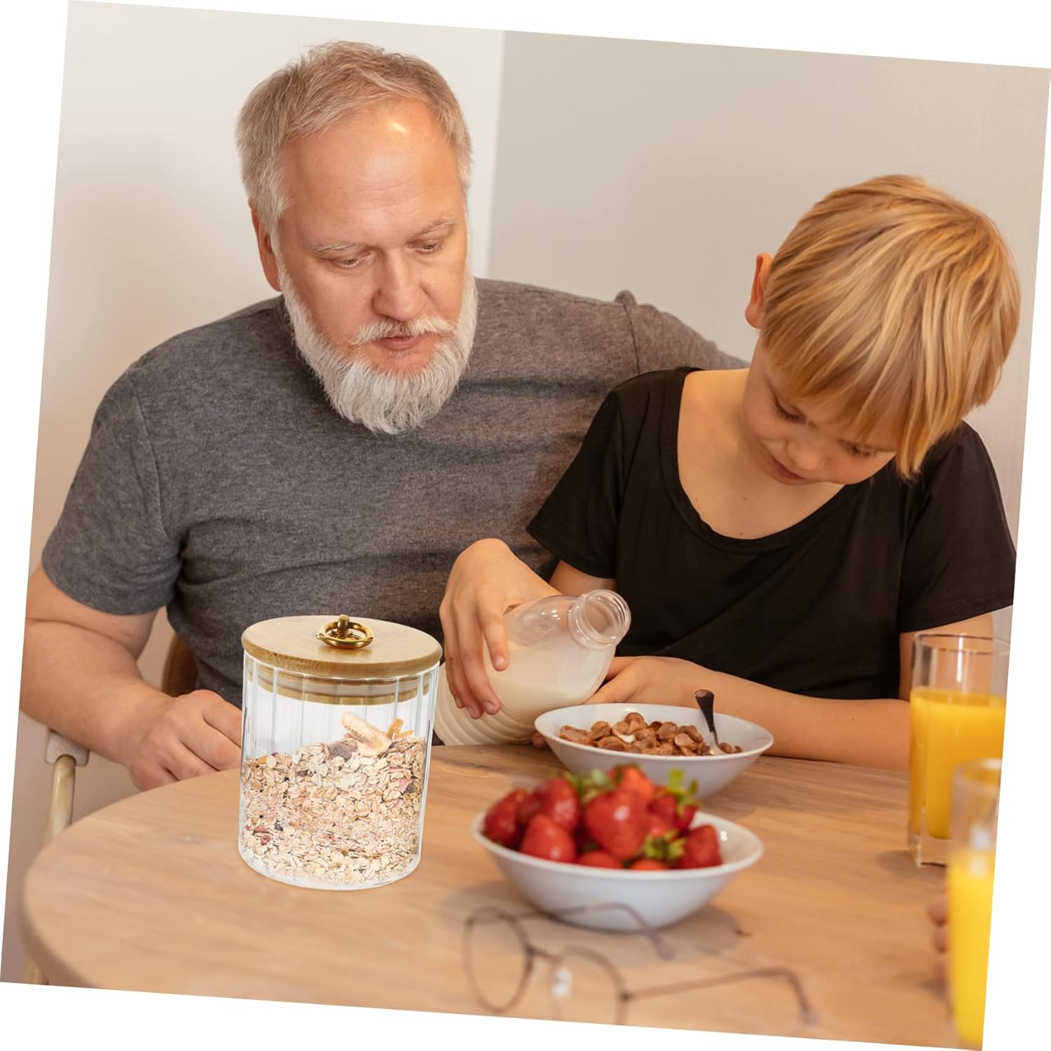 -Materials:Glass, , silicone Cereals Container