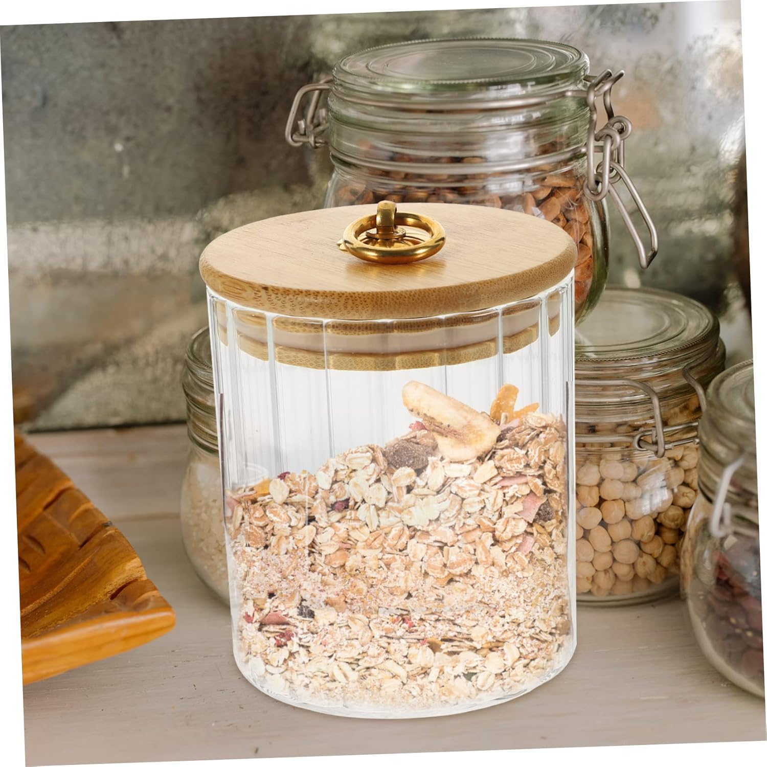 -This glass canister is appropriate for storing natural teas, nuts, tea, peanut, legumes, grains and dried fruits. Glass Canisters With Lids