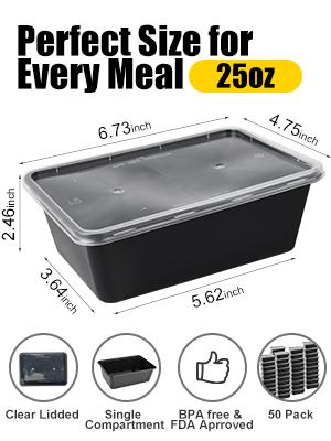 AIFUSI 50 Pack Meal Prep Container, Disposable Lunch Field, Meals Storage Washable Containers with Lids, Reusable Plastic Bento Field Microwave/Dishwasher/Freezer Protected (750ML/ 26 OZ)