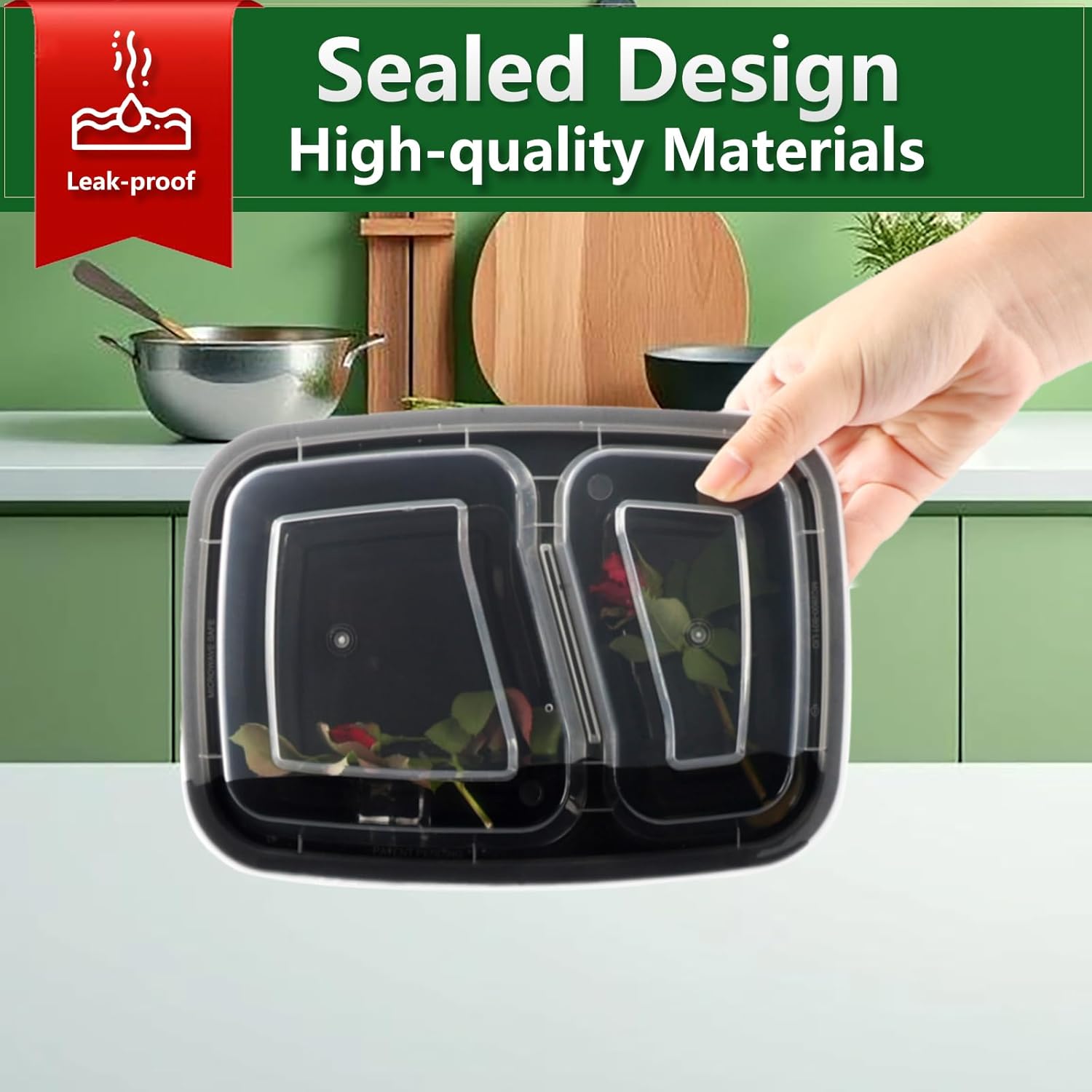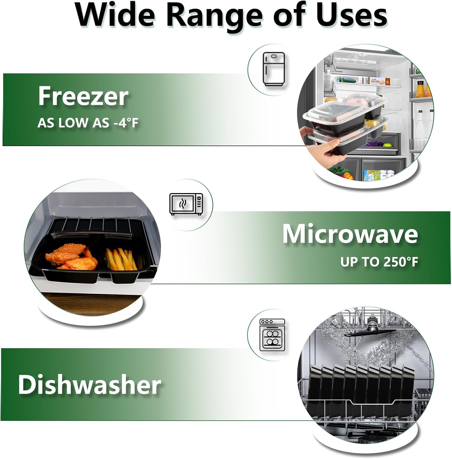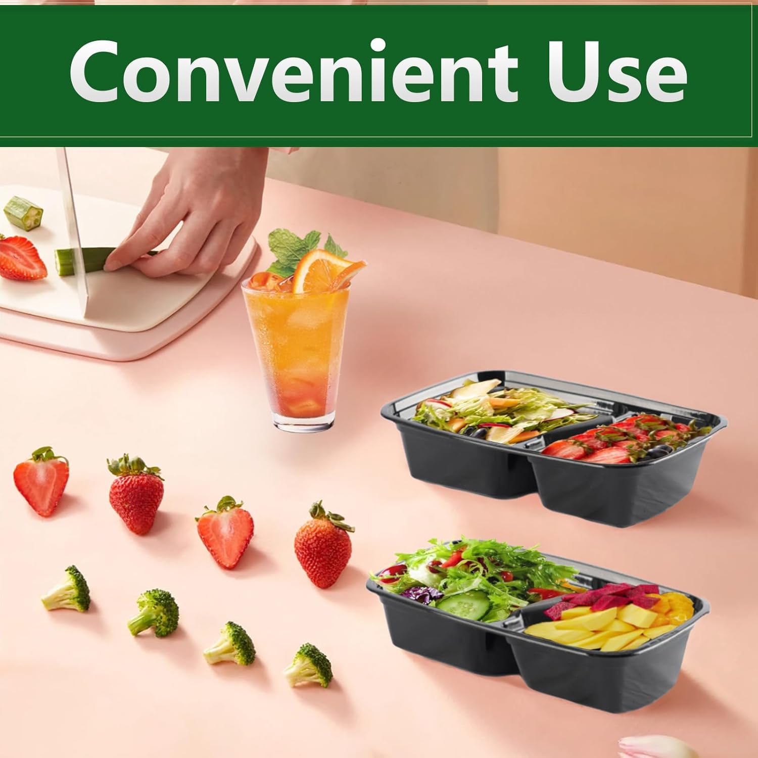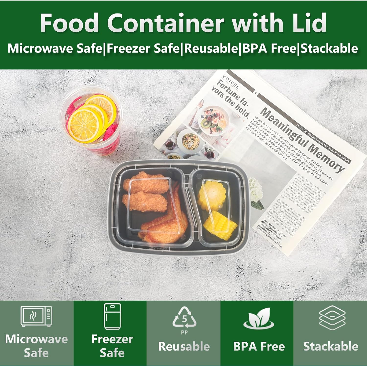 Meal Prep Containers 2 Compartment 30 Pack, 29 oz Divided Reusable Meals Storage Containers with Lids Takeout Meals Storage Containers Black, Microwave Dishwasher Freezer Secure, Stackable, BPA Free