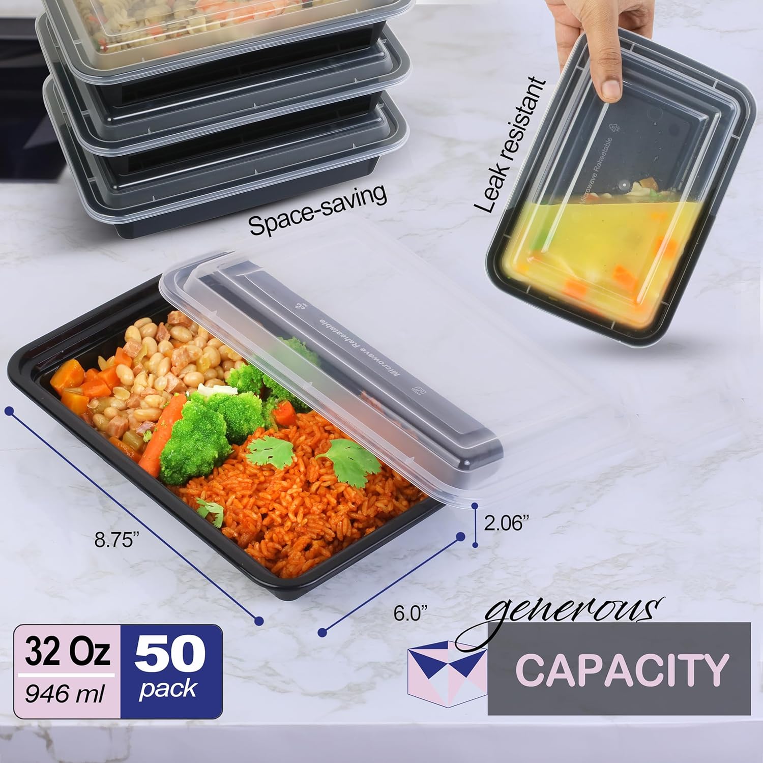 Meal Prep Containers 50 Pack – Meals Storage Container with Lids, Resturaunt Take-Out Container, Sturdy & Hermetic, Microwave & Freezer Protected for Freshness, Comfort & Group (32oz -50 Pack)