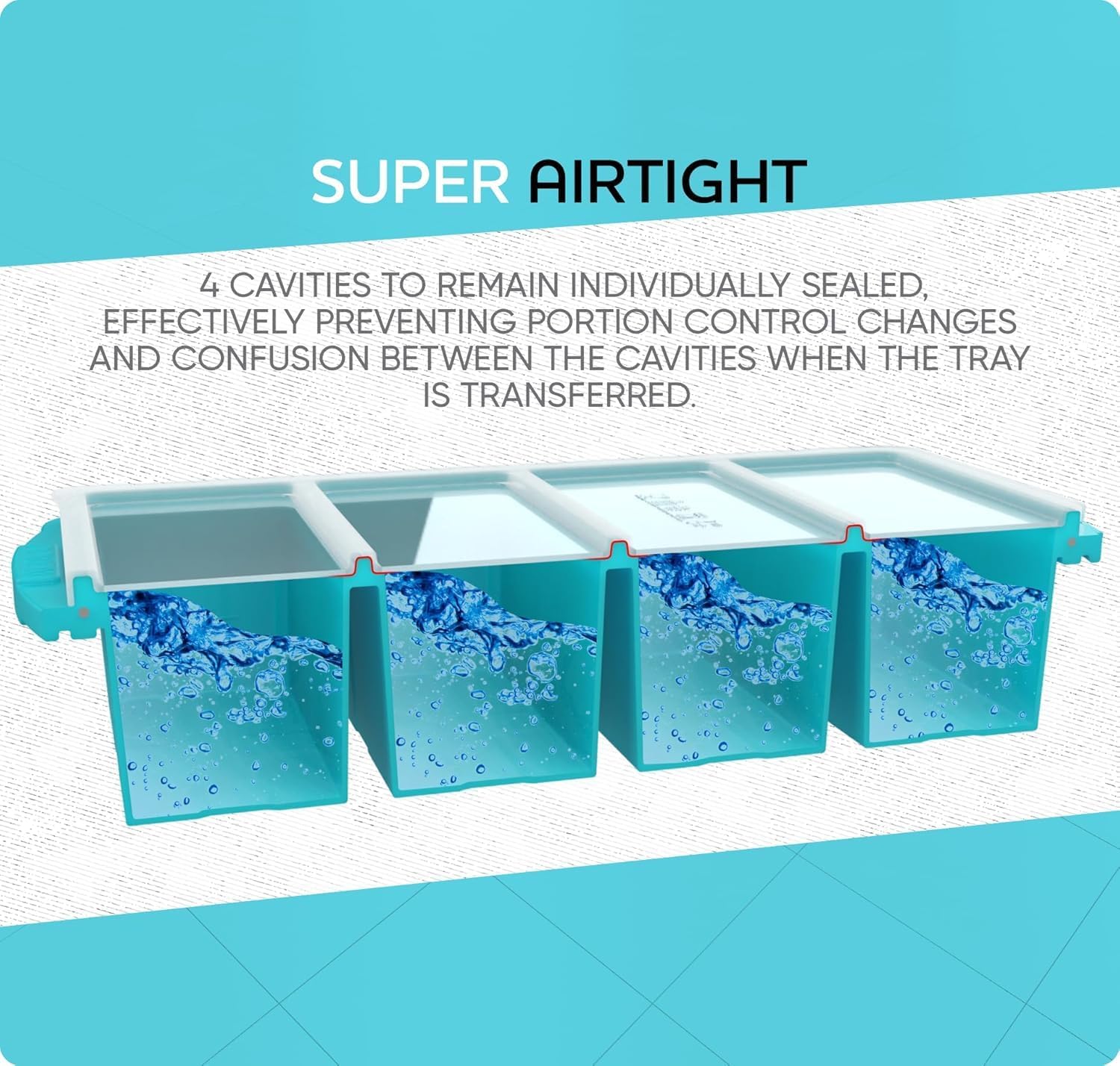 EASY OPEN AND CLOSE FLEXIBLE LID – Our clear silicone lid has an additional robust seal, it permits the 4 cavities to stay individually sealed, successfully stopping portion management modifications and confusion between the cavities when the tray is transferred