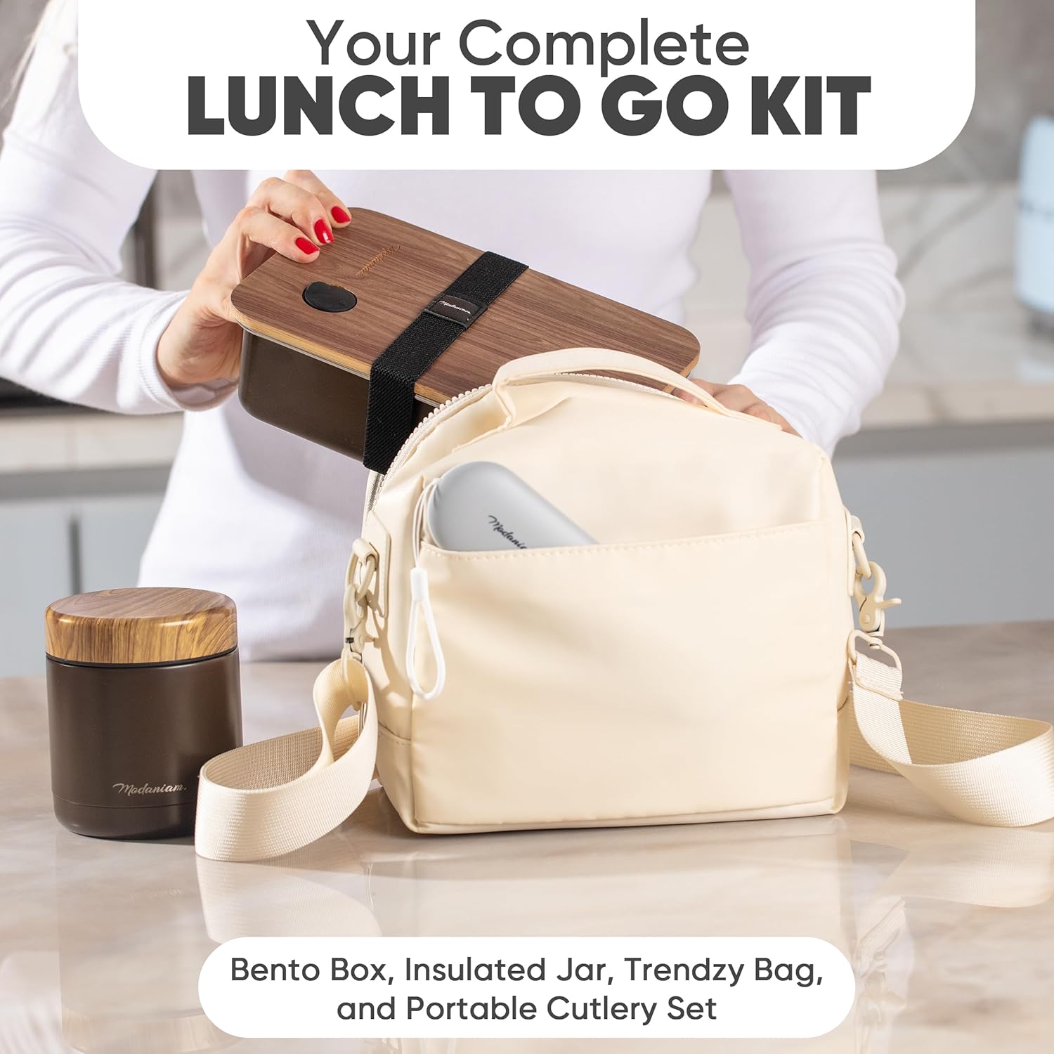 MODANIAM FOOD ON THE GO COLLECTION: This bamboo bento field for adults/ Lunchbox pairs properly with Modaniam Lunch Luggage, Transportable Cutlery, Insulayed jars and different Lunch field and bento field assortment. The Lid has darkish wooden end that pairs with Modaniam Insulated Jars completely.