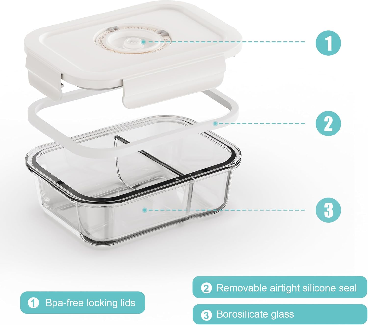 Microwave, oven and freezer protected:Vacuum Glass Meal Prep Containers are oven, microwave, dishwasher, and freezer protected. Withstands temperatures from -4ºF to 752ºF (-20ºC to 400°C). (Word: Take away lid earlier than putting in microwave/oven.)