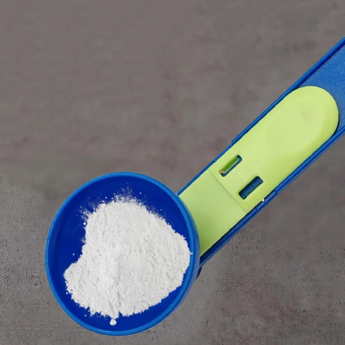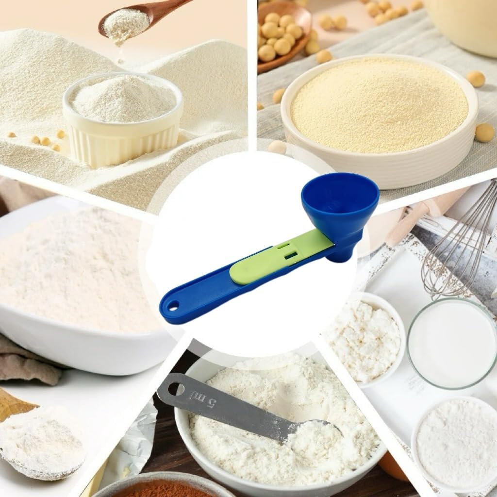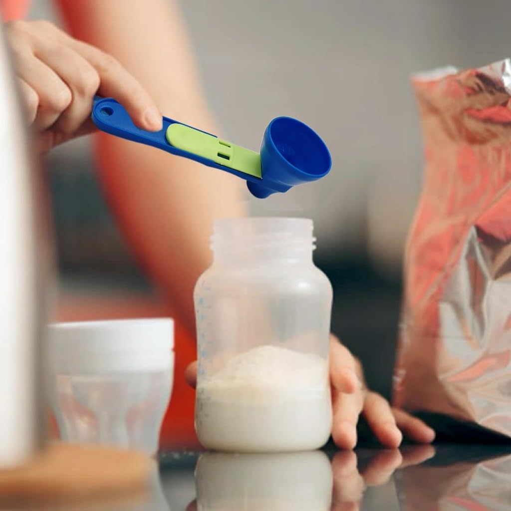 4PCS Plastic Protein Powder Sliding Spoons Espresso Leak Proof Spoons measuring funnel, espresso anti-colander, protein powder container (2PCS Blue)