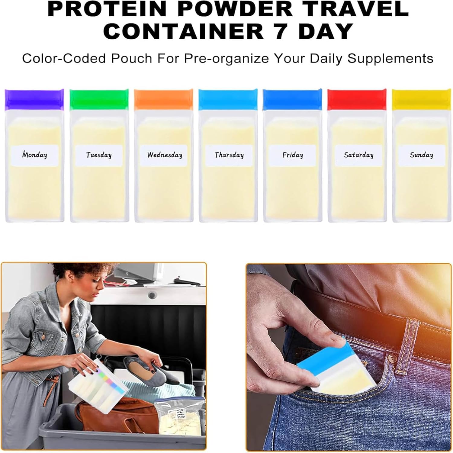 Moveable Protein Powder Container Set: This journey protein powder container contains 21 color-coded single-dose pouches with upgraded curved bottoms to forestall clumping, together with 3 massive zip baggage for simple group, making it superb for health lovers and vacationers