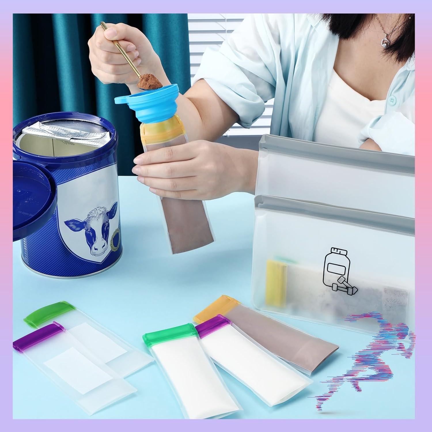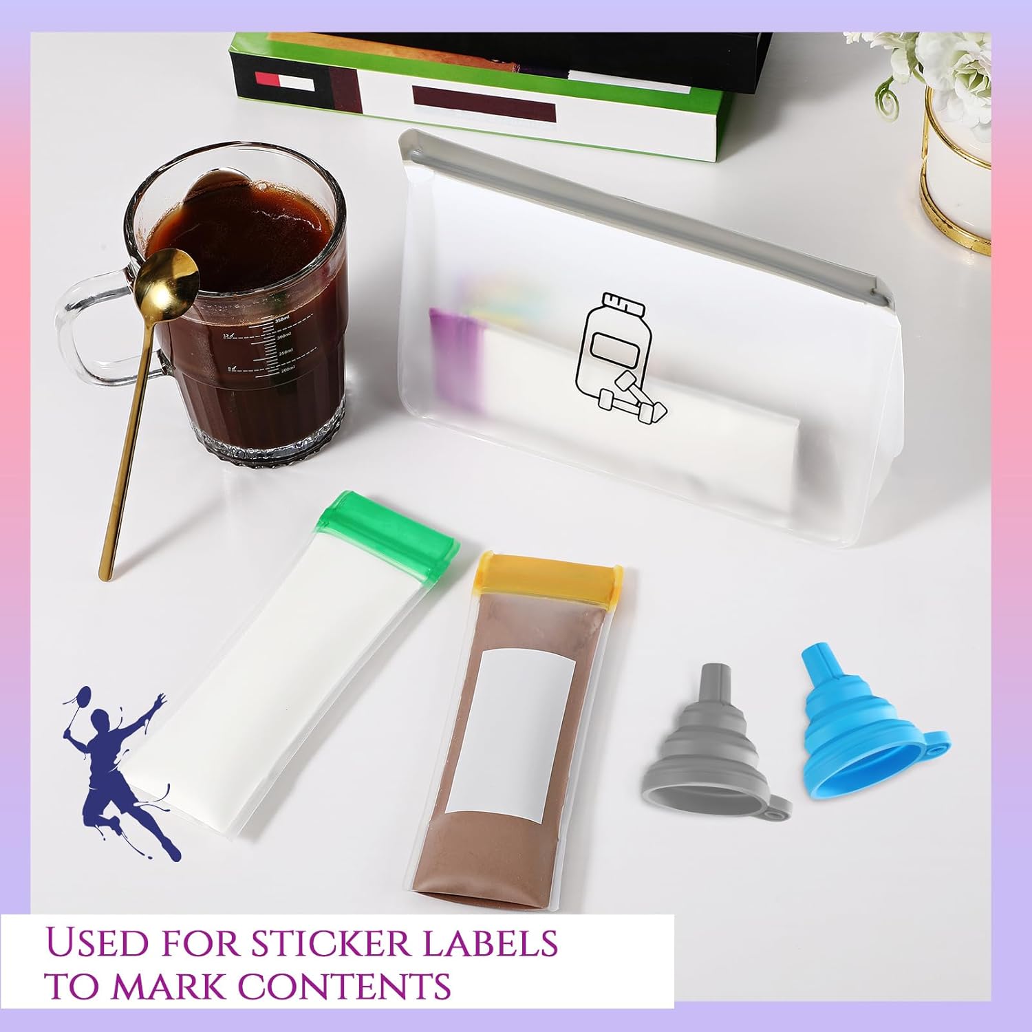 Protein Powder Journey Container set with Funnels 12 Pcs Reusable Powder Complement Packets Single Dose Package Moveable Journey Containers Zip up Baggage for Exercise, Health, Enterprise Journey