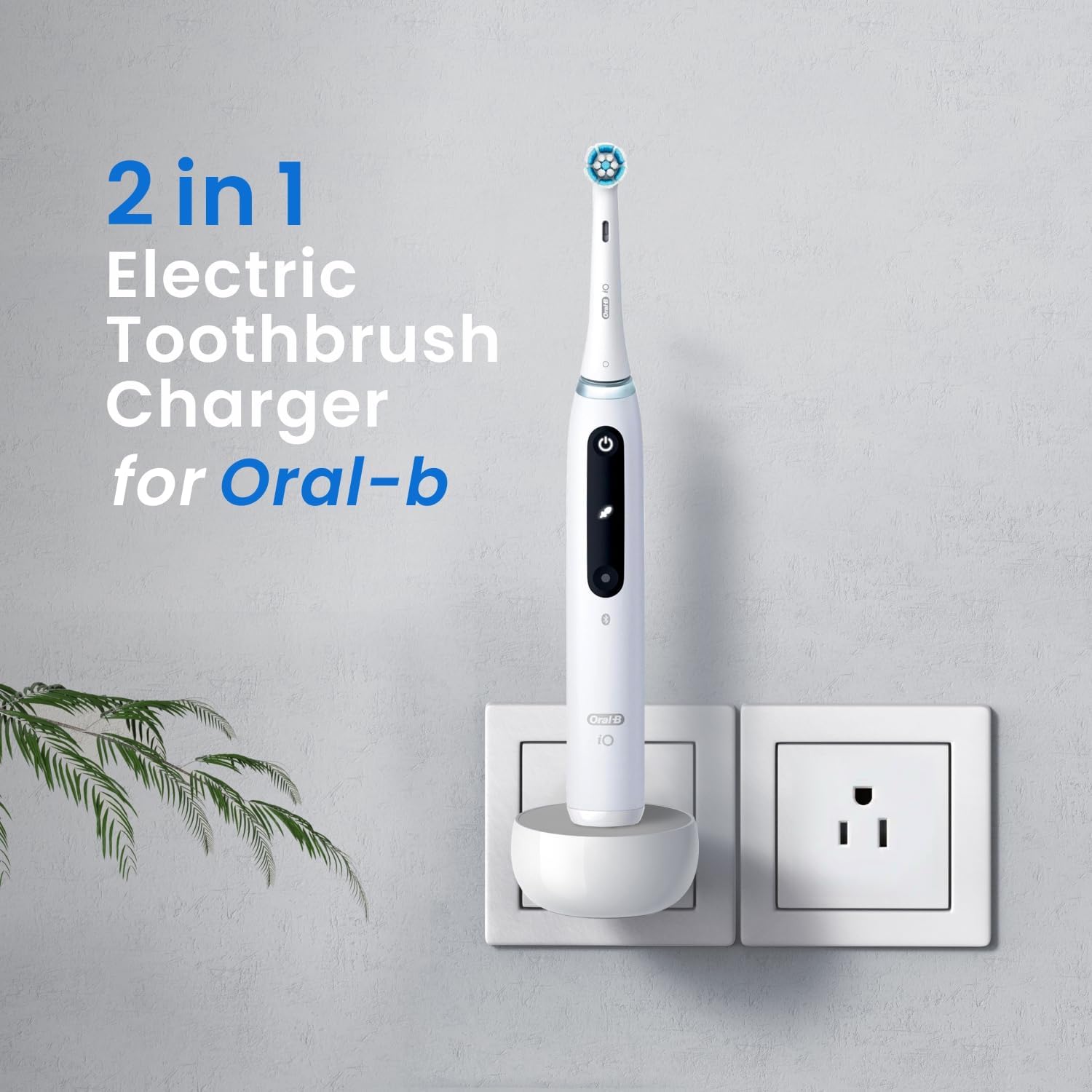 2-in-1 Wall Charger for Oral-B Braun Electrical Toothbrush, Charger Base for Oral B Genius Professional Sensible Vitality Children io2 io3 io4 io5 io6 Serie, IPX5, White