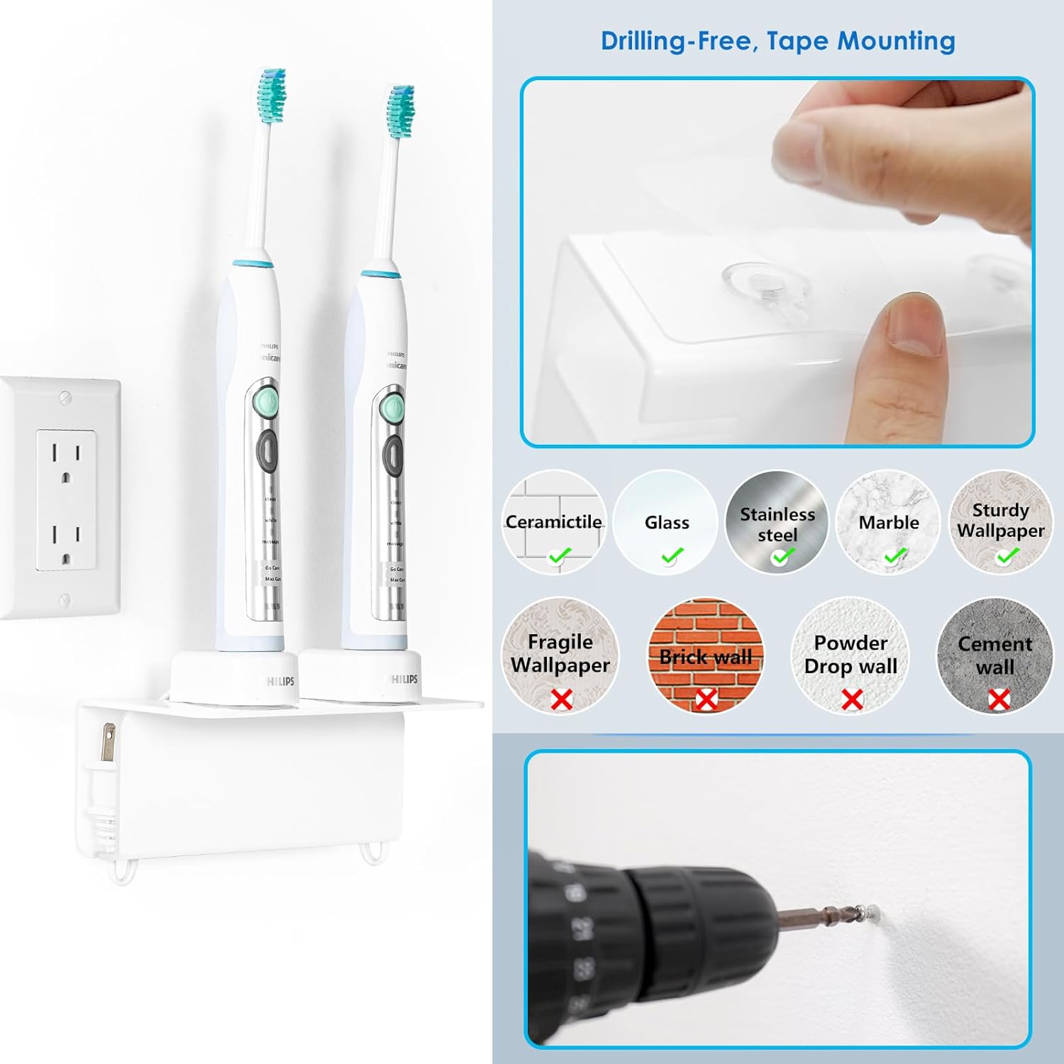 Acrylic Electrical Toothbrush Holder for Toilet, Wall Mounted Electrical Toothbrush Holder with Hidden Cable Administration, Area-Saving, No Falling Off, Safe Attachment -White-2P