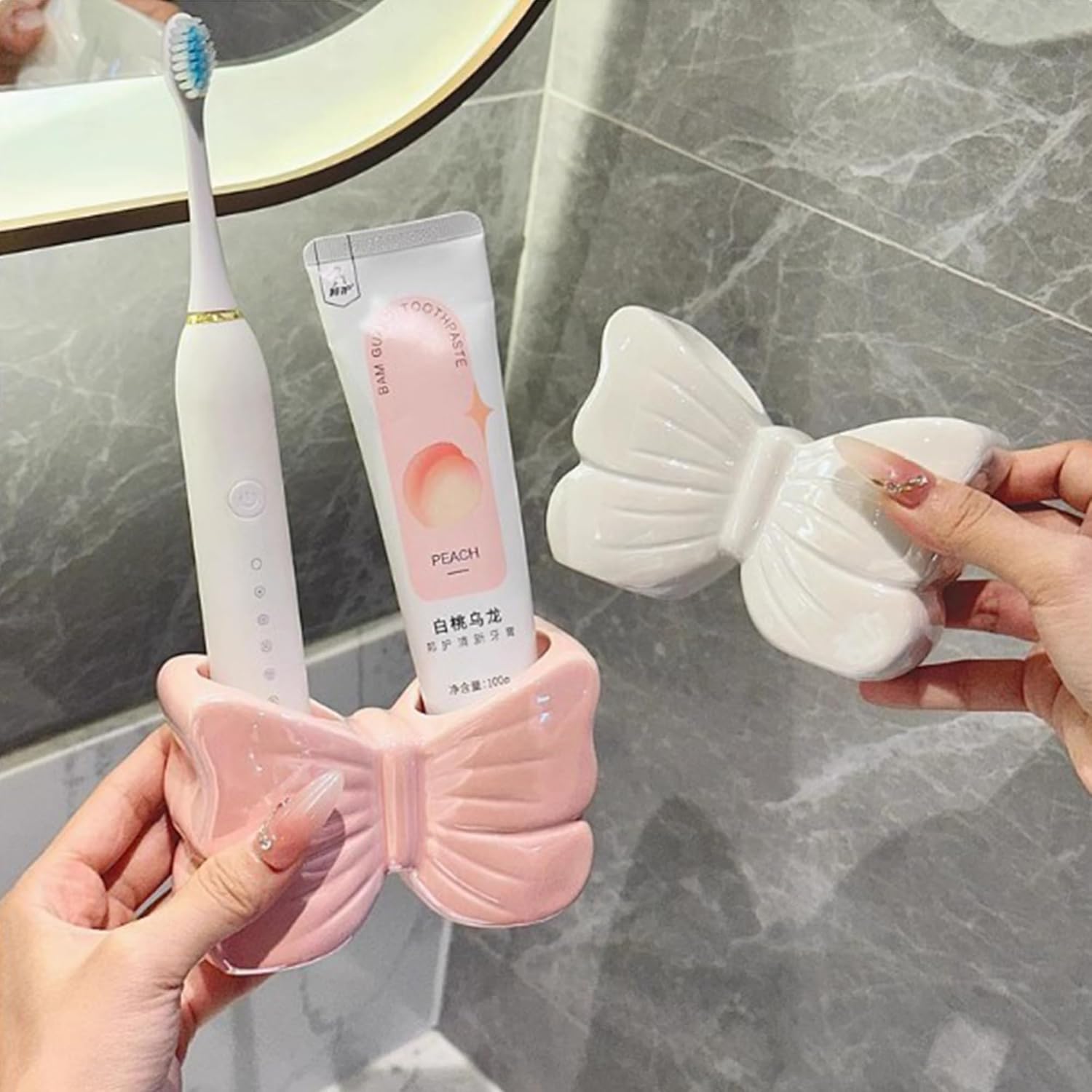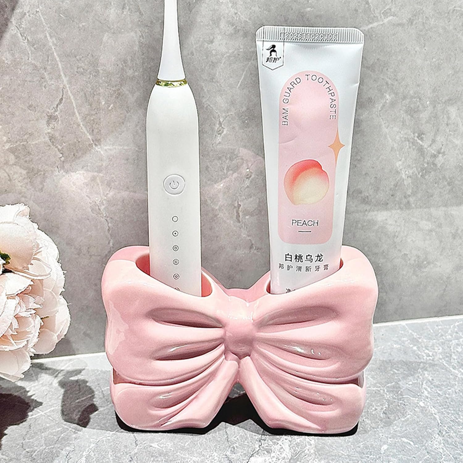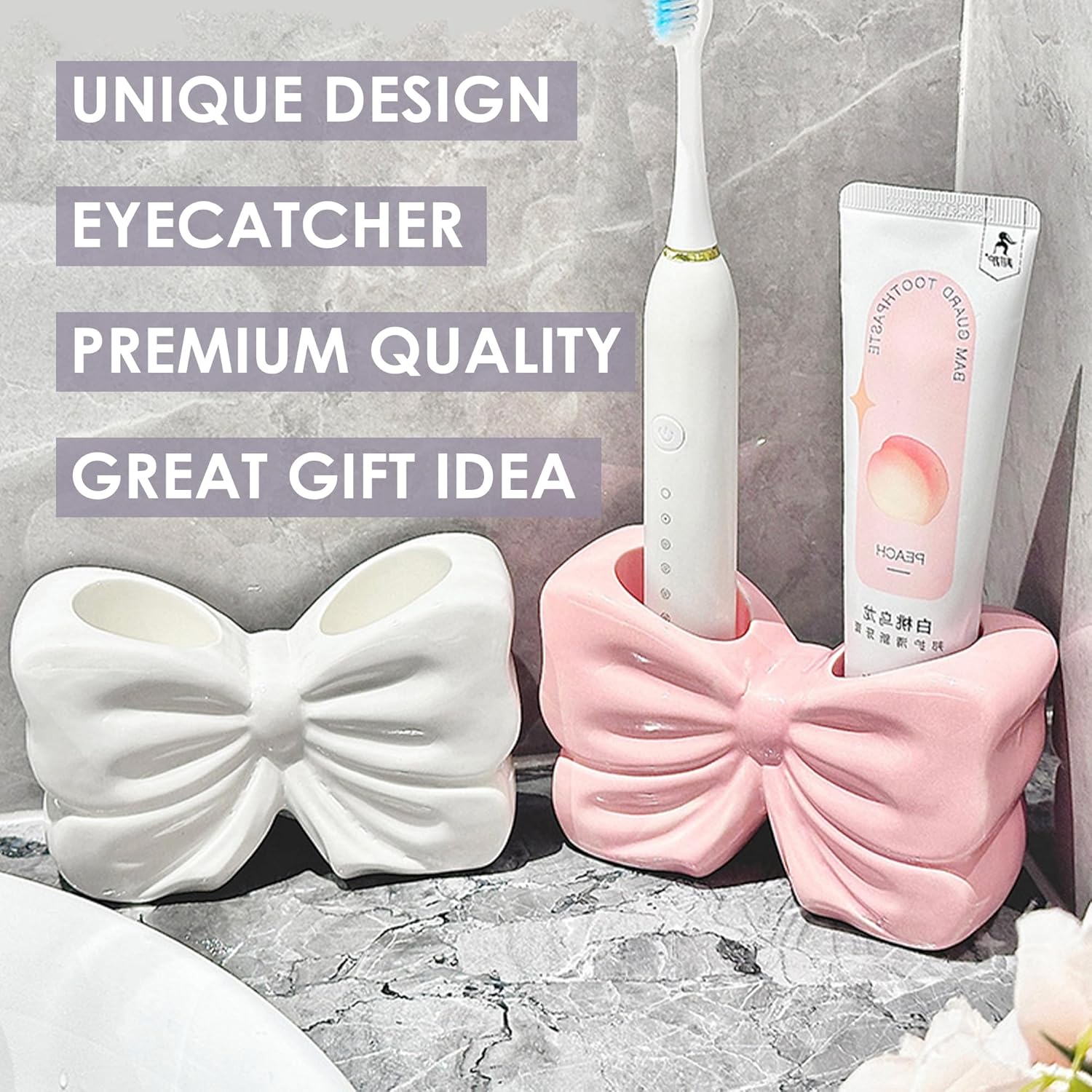 Juju Bowknot Toothbrush Organizer – Toothbrush Holders for Loos – Tooth Brush Holder for Rest room – Electrical Toothbrush Holder Toothpaste Holder Set – Rest room Toothbrush Holder Set (White)
