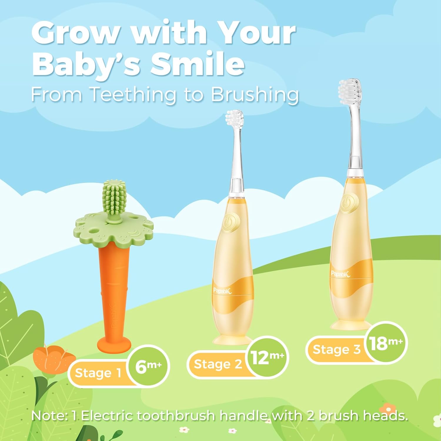 Papablic Rising-Smiles Child Coaching Toothbrush Set, Child Toothbrush 6 to 12 Months, Toddler Toothbrush 12 Months and Up, Carrot Teether & Bunny Sonic Electrical Toothbrush
