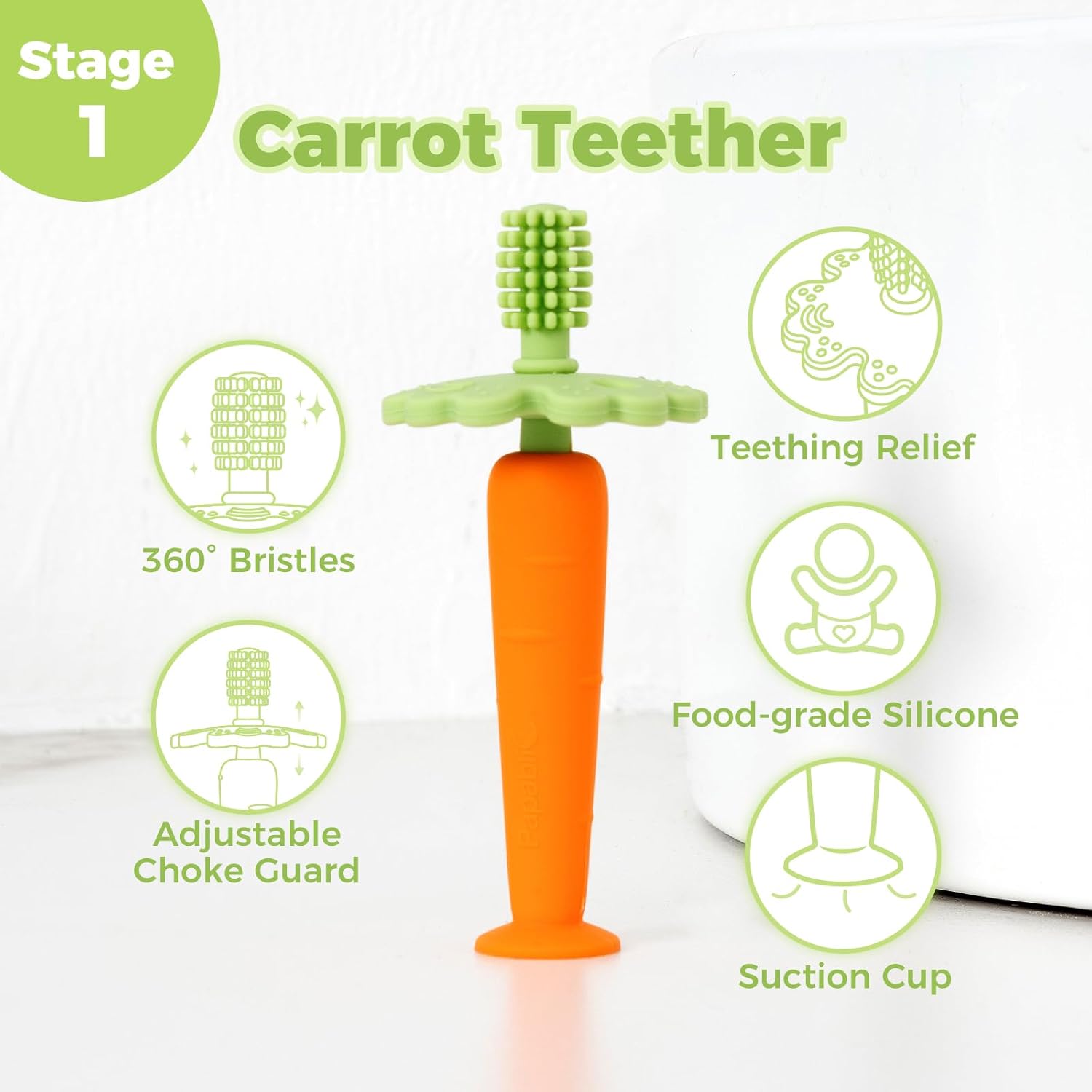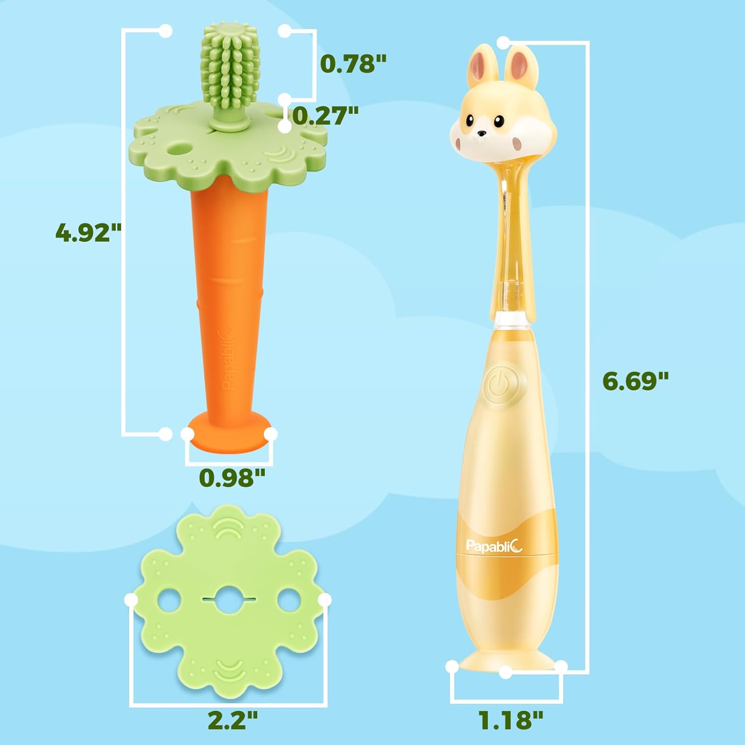 Papablic Rising-Smiles Child Coaching Toothbrush Set, Child Toothbrush 6 to 12 Months, Toddler Toothbrush 12 Months and Up, Carrot Teether & Bunny Sonic Electrical Toothbrush