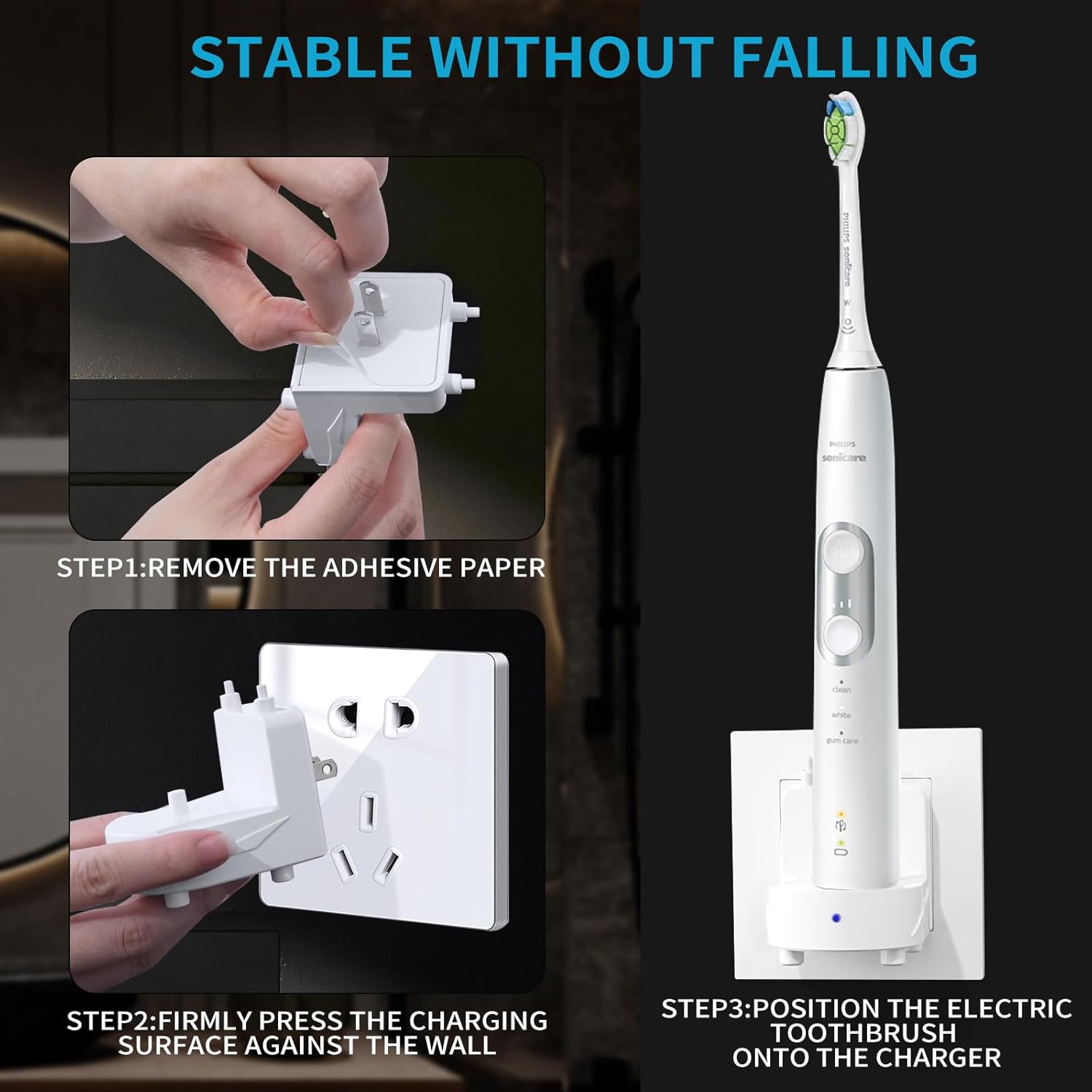 【Waterproof and Lavatory-Pleasant Design】: The IPX7 waterproof base permits the charging station to be safely mounted straight on toilet wall sockets, making it handy to be used close to sinks, showers, or bathtubs. This ensures the charger can face up to occasional splashes and moisture within the toilet atmosphere.
