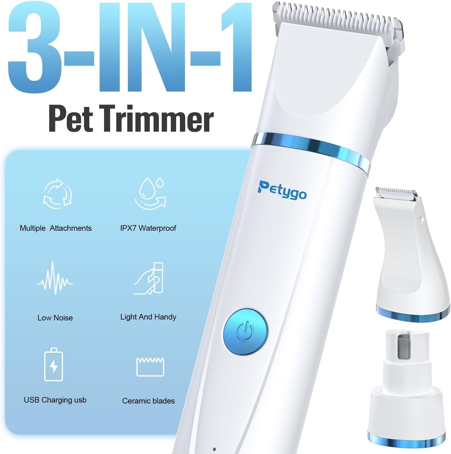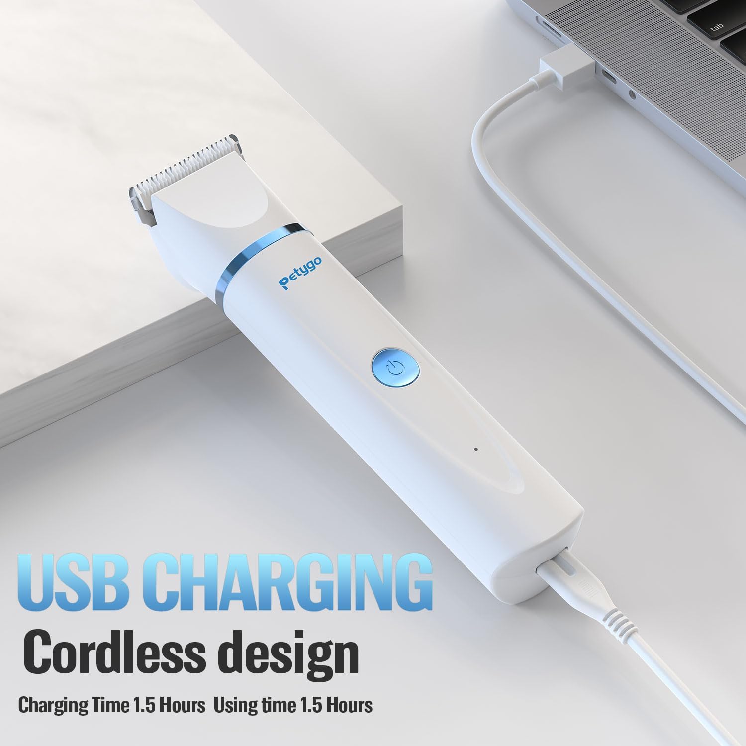 【All-In-One Pet Clipper Package】 – Petygo Pet Trimmer Package comes with 2 interchangeable trimmer heads and 1 nail grinder head, a USB charging cable, and a small brush.perfect for canine, cats, and different furry pets. Excellent for full-body grooming and manicure.