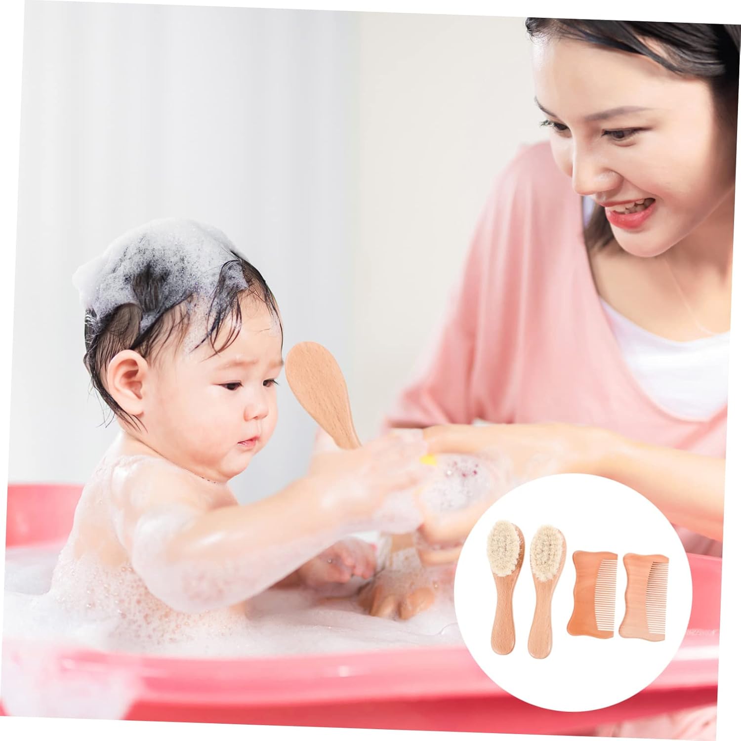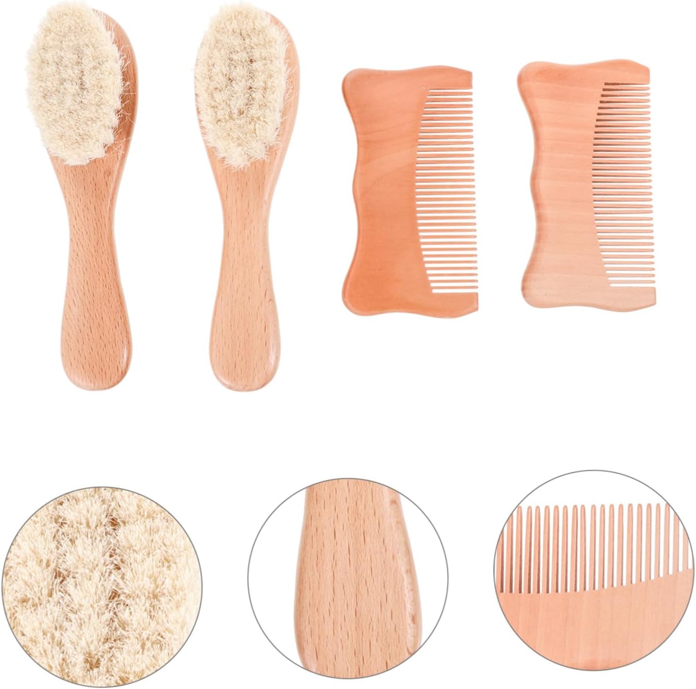 4 Pcs Hair Brush and Cat Ear Comb Set Scalp Grooming and Head Care Equipment for Infants and Newborns Pure Wood Hair Care Necessities