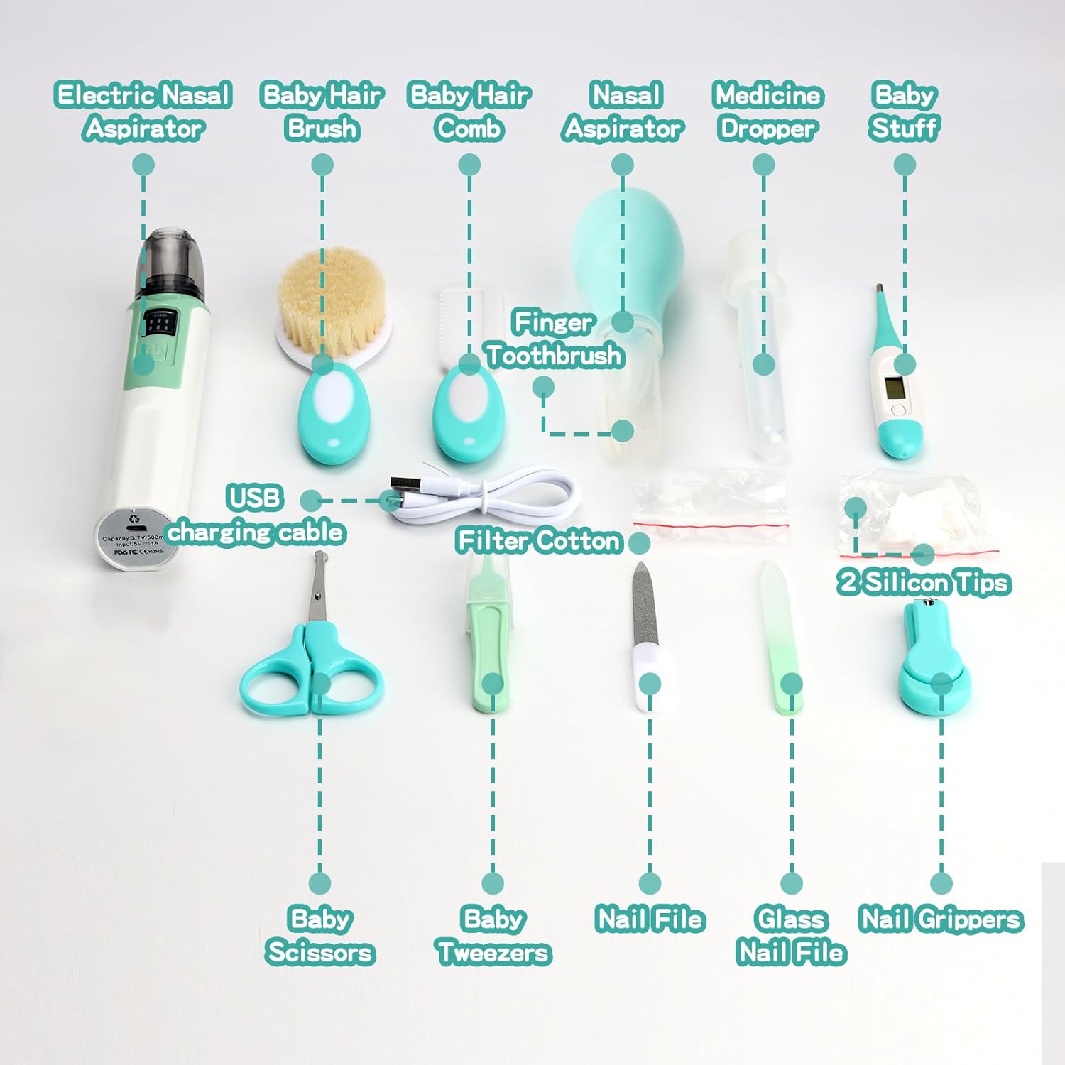 Child Grooming Equipment, Toddler Security Care Set with Child Electrical Nostril Aspirator,Child Hair Brush Comb Nail Clipper Nasal Aspirator,Child Necessities Equipment for New child Women Boys (17 Computer Inexperienced Equipment)