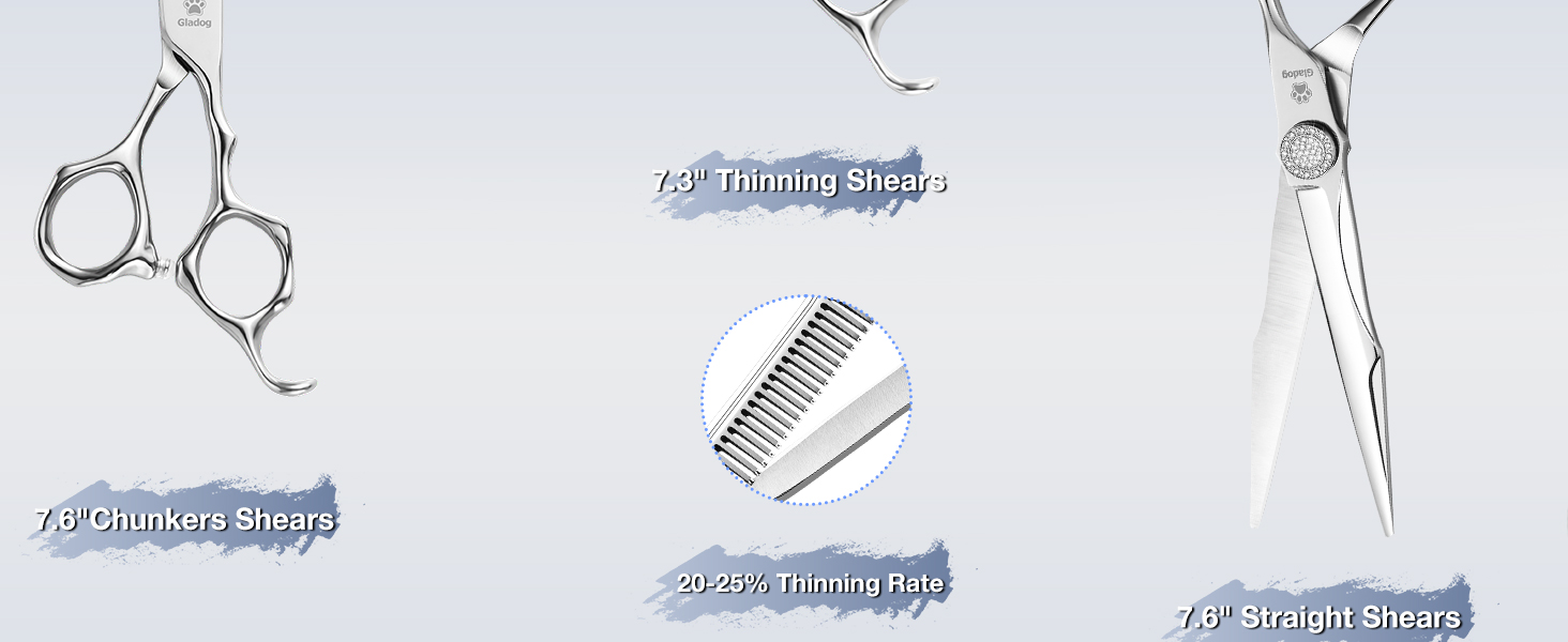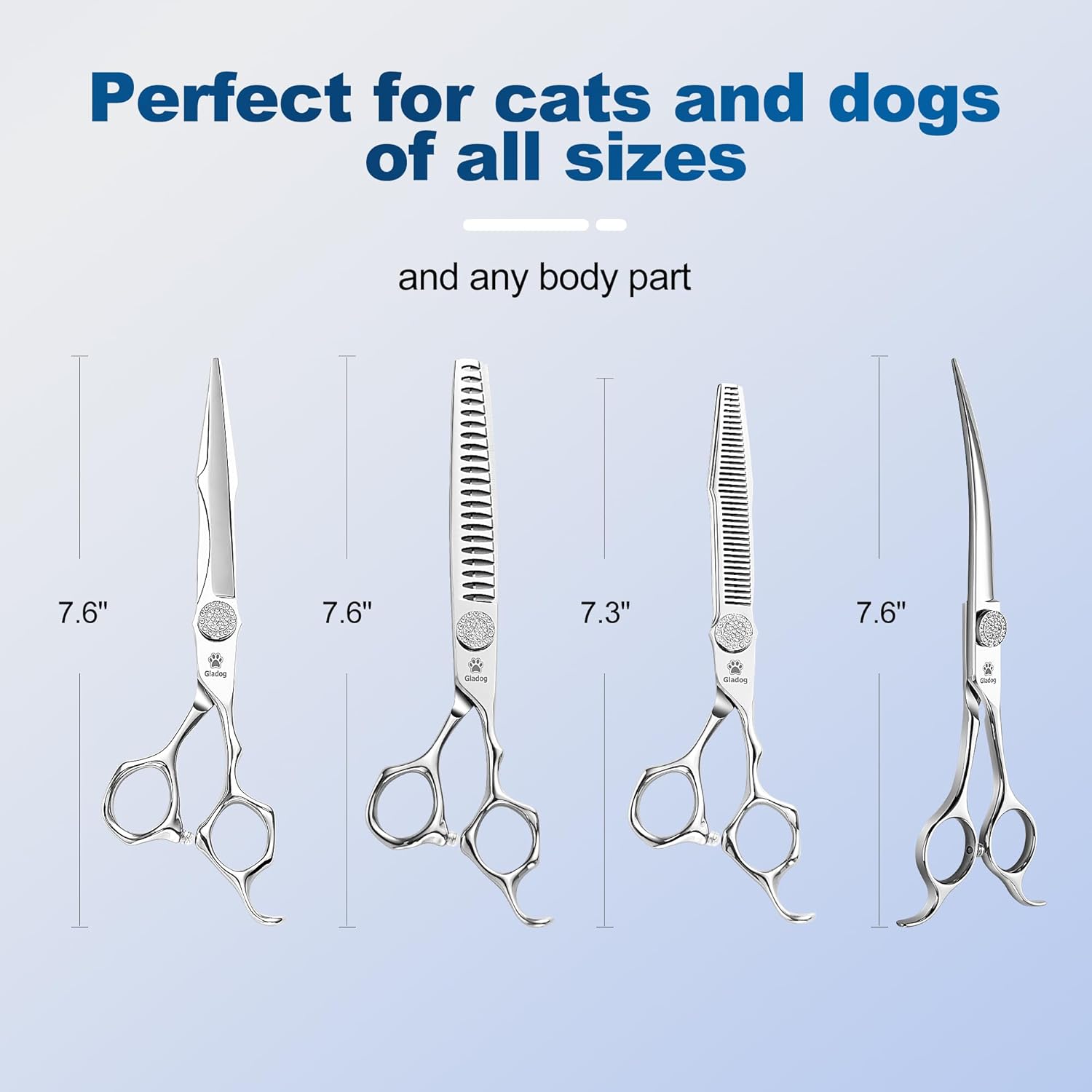 GLADOG Luxurious Canine Grooming Scissors Set – 7″ Straight, 6.5″ Thinning, 7″ Chunkers, 7″ Curved Canine Shears for Grooming – 9CR Metal, Skilled Grooming Package, Pet Grooming Scissors for Canine and Cats