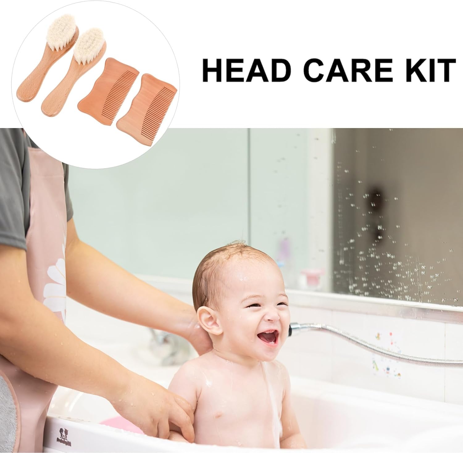 SHOWERORO 4 Pcs Comb and Brush Care Set Mild Scalp Grooming Equipment for Newborns and Pure Picket Comb and Brush Set