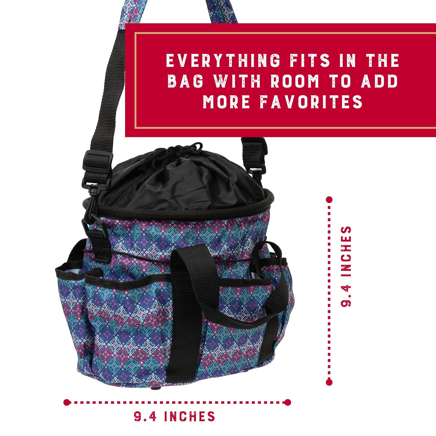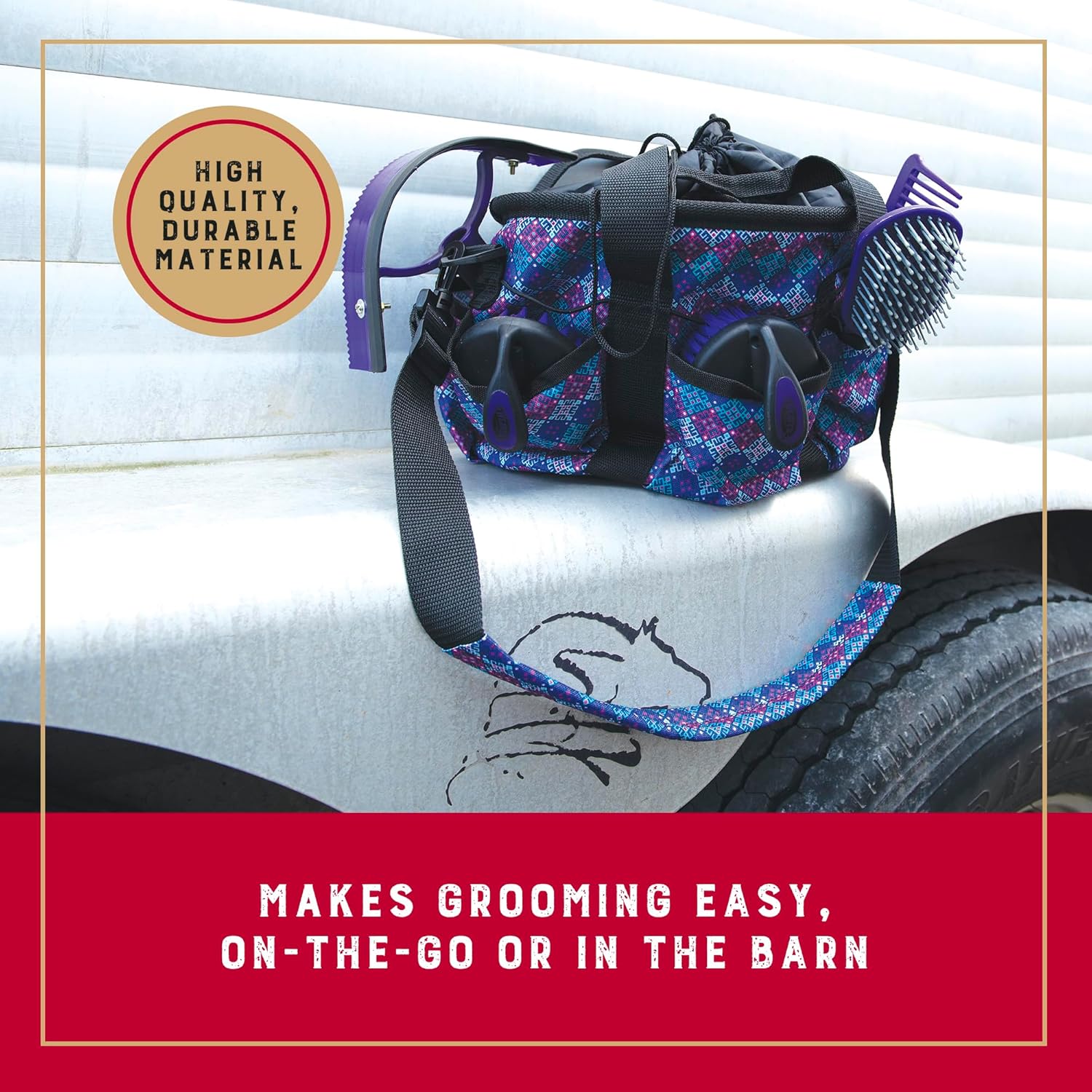 Comfy and Transportable: Designed for simple use, the adjustable grooming bag for horses consists of snug webbing handles and smooth padded shoulder strap with on and off snap; effortlessly carry this light-weight equine grooming package wherever you go