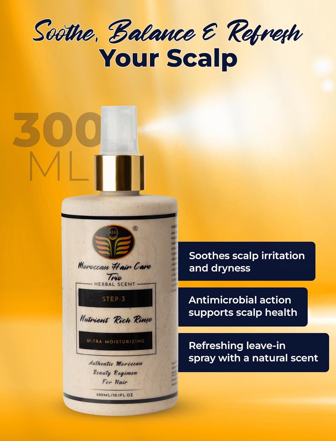 Moroccan Hair Care Trio Set – Argan Oil Mix, Natural Cleaning Shampoo & Nutrient-Wealthy Rinse – Cleanses, Nourishes & Revitalizes for More healthy, Shinier Hair – Dermatologist Accredited. 3 Piece Set