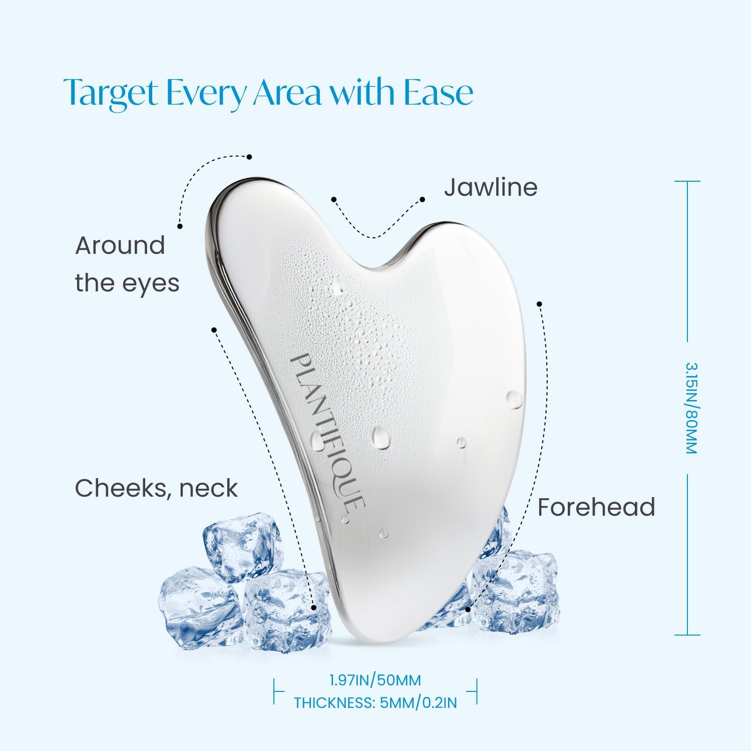 PLANTIFIQUE Stainless Metal Gua Sha | Facial Instrument | Pores and skin Therapeutic massage for Face Physique Eyes Neck Coronary heart Model with Journey Pouch | Pores and skin Care Reward